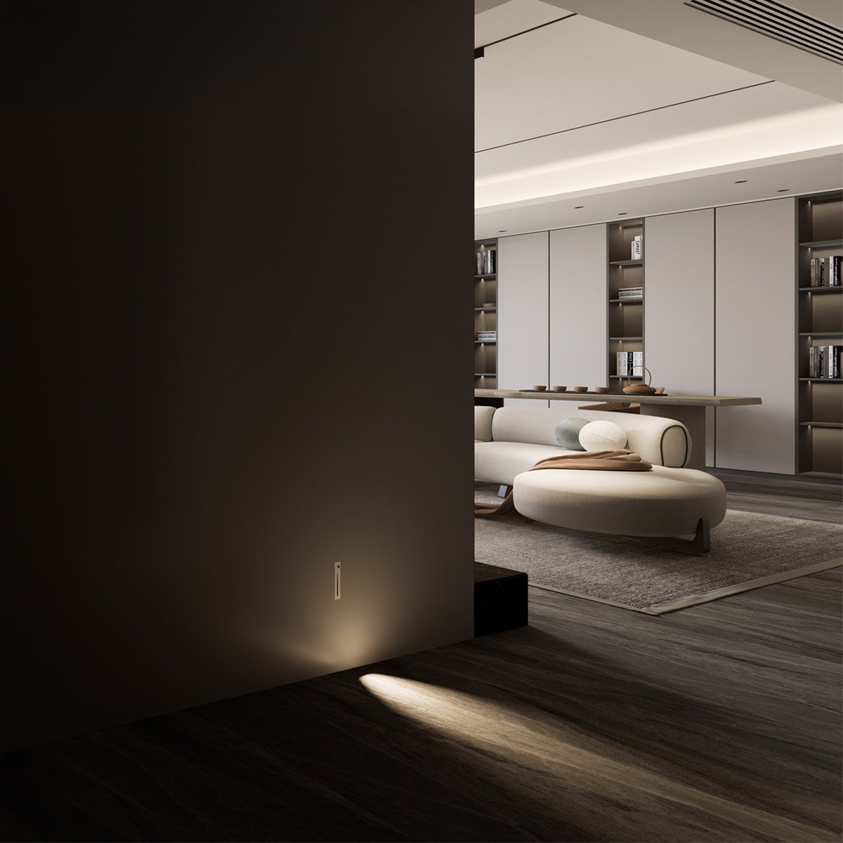 NightPulse 127 Trimless LED Step Light – This sleek and modern trimless LED step light measures 30.5x150.6mm with a cutout size of 31x127mm and a thickness of 38mm (cutout thickness 40mm). Available in sleek black, white, and gray finishes, it offers two convenient versions: a standard switch model or an advanced motion sensor version for added convenience. Choose from two stylish front frame designs: droplet or stripe. The NightPulse 127 provides energy-efficient lighting, perfect for stairs, hallways, and other low-light areas, ensuring a clean, minimalist aesthetic for both residential and commercial spaces.