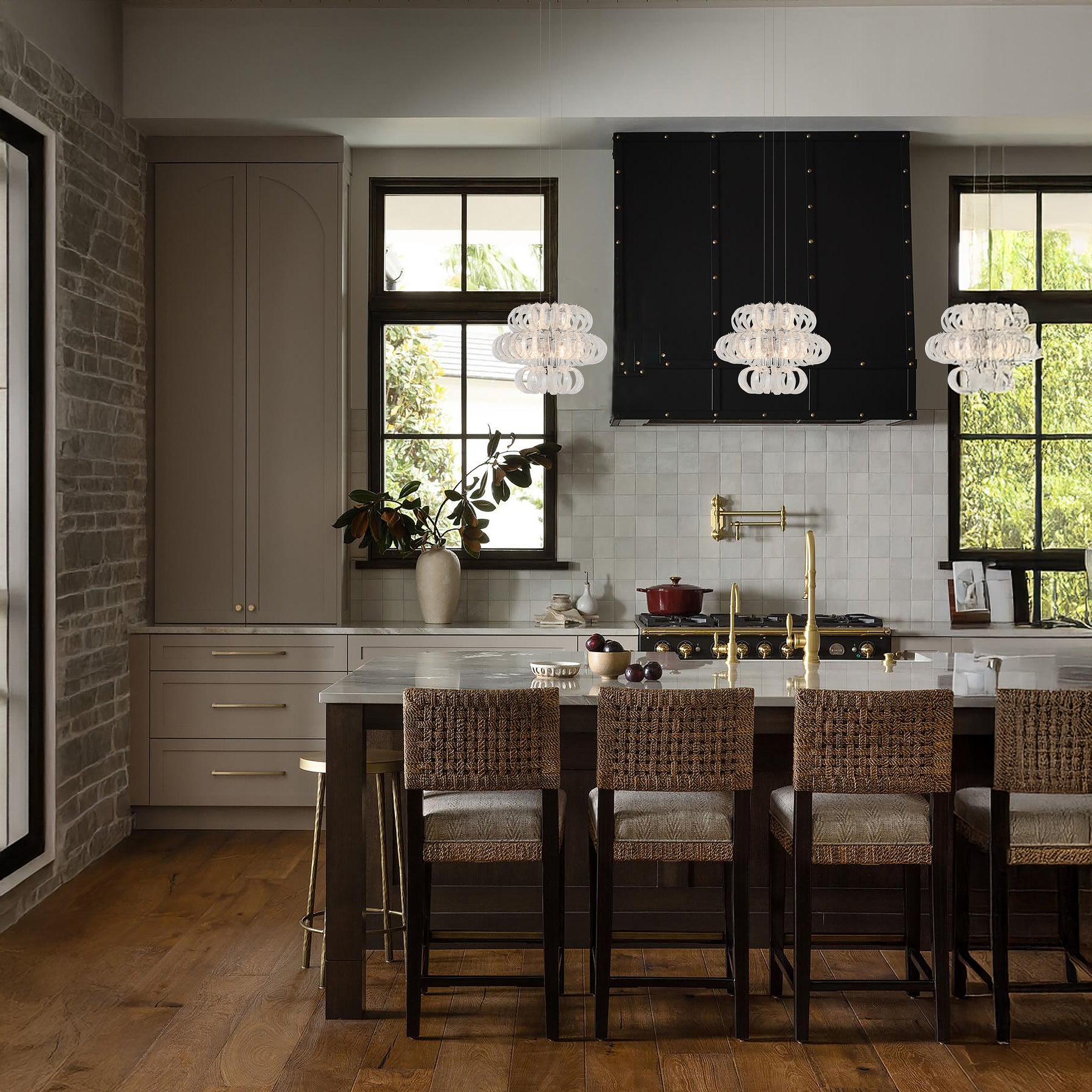 The Lussoria Collection embodies timeless sophistication with its cascading layers of handcrafted glass rings, reminiscent of fine jewelry. Each meticulously crafted glass piece captures and reflects light in a luxurious interplay of brilliance and shadow, creating a captivating statement for grand staircases, refined bedrooms, or elegant living spaces. Available in multiple sizes and configurations, Lussoria offers Italian-inspired opulence with the unique artistry of hand-blown glass.