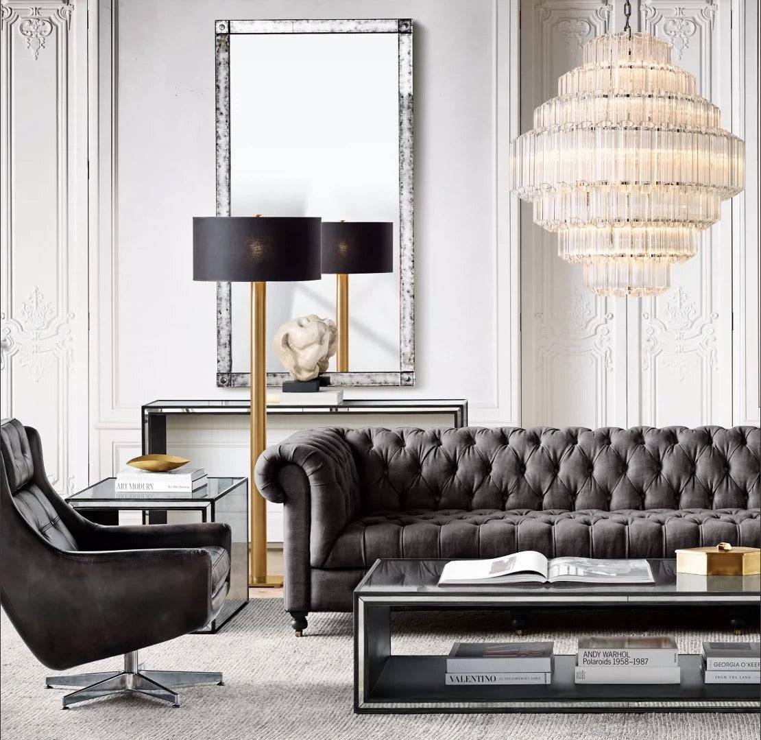 The Napoli Chandelier, crafted from metal and hand-blown glass, embodies the timeless elegance of Art Deco design. This exquisite chandelier can be fully customized to any size or shape, making it a versatile choice for various spaces, from dining room pendants and living room fixtures to void pendants. Additionally, the glass shades can be tailored to your preferred color, ensuring a perfect match for your interior décor. Illuminate your space with the sophisticated style and customizable features of the Napoli Chandelier, designed to enhance both residential and commercial settings with its classic charm and modern adaptability.