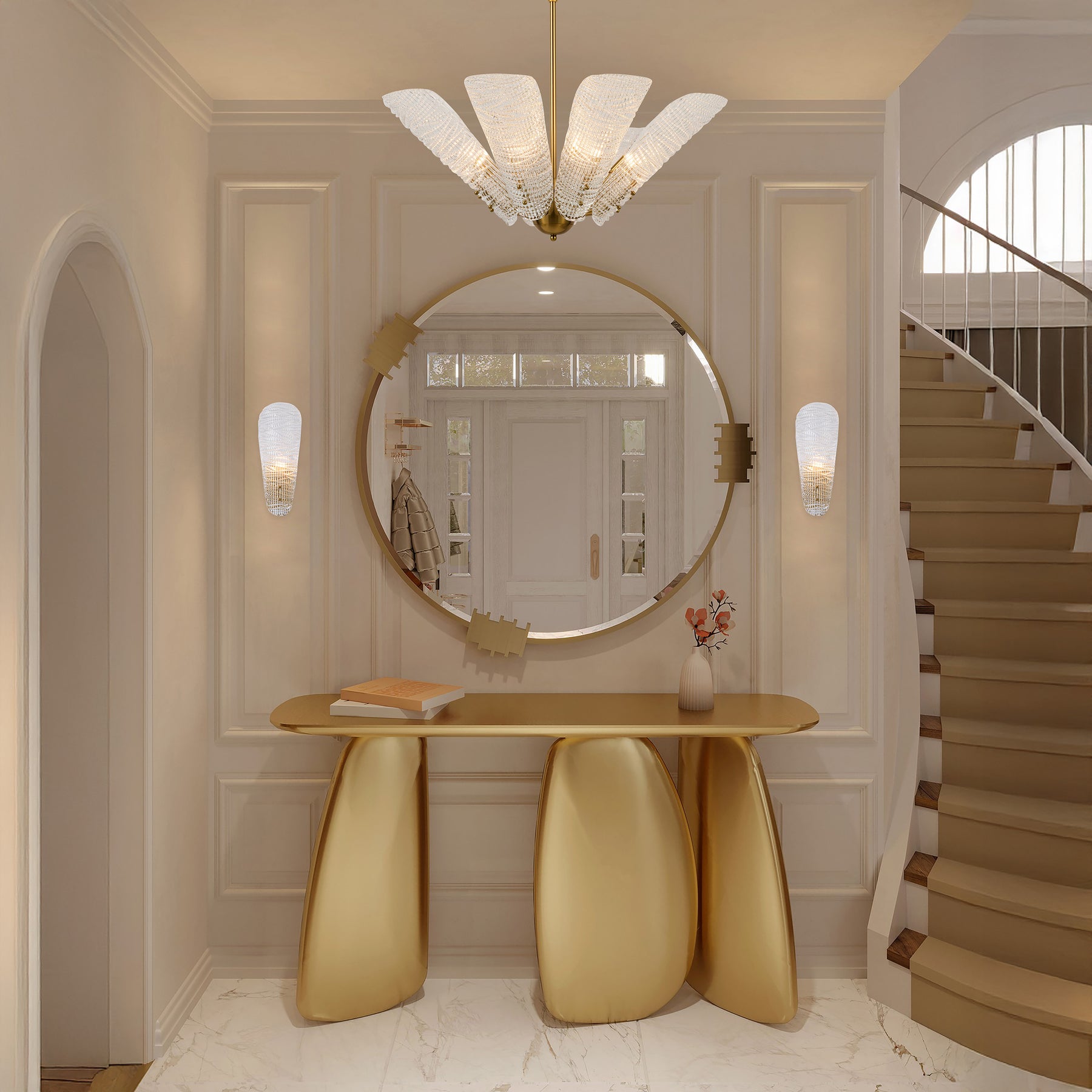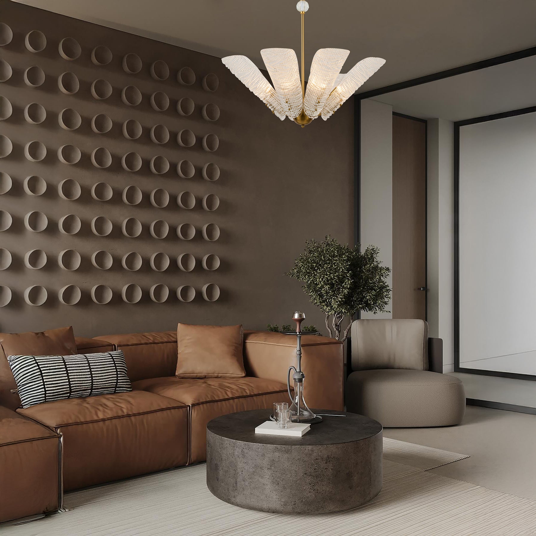 Elegant, sculptural, and versatile, the VetraLeaf Series reimagines classic chandelier design through exquisite handcrafted glass and refined metalwork. Each piece features hand-blown and hand-engraved glass petals arranged in graceful radial formations that bloom with soft, radiant light.