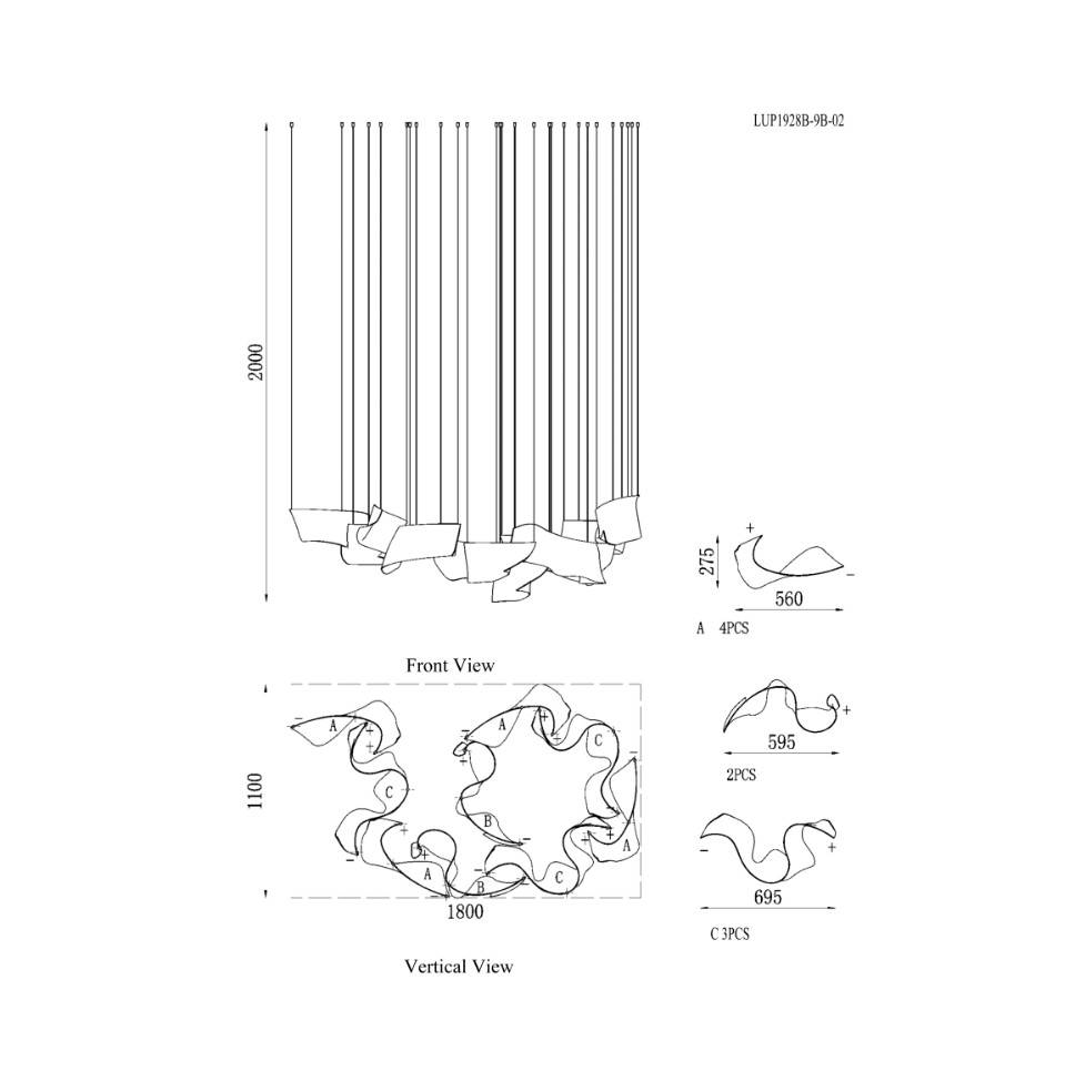 The Silken Flow Custom 9 Pendant Light is a sculptural lighting piece that merges art and illumination. Crafted from optical acrylic and metal with built-in LEDs, its fluid form creates a captivating light effect ideal for stair voids, double-height interiors, and modern lobbies.