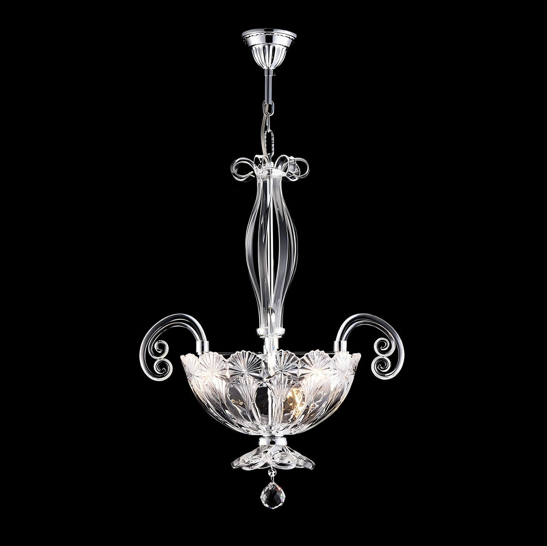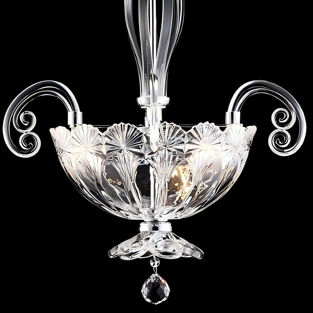 The Fleur de Cristal Chandelier brings timeless elegance to any interior, featuring a sculpted crystal glass bowl paired with a polished metal frame. Its graceful curves and detailed craftsmanship create a brilliant display of light, making it a striking centrepiece for both modern and classic homes.