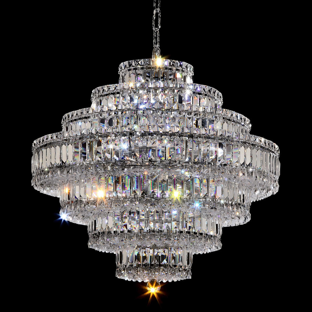 The Nile Radiance Chandelier is a luxurious lighting piece inspired by the elegance of Egypt. Its stunning structure is crafted from high-grade stainless steel, featuring a meticulously polished mirror finish and electroplated chrome surface that exudes sophistication. The chandelier is adorned with exquisite Egyptian Asfour crystal accents, which are renowned for their clarity and brilliance. These crystals capture and reflect light, creating a mesmerizing display of radiance and sparkle.