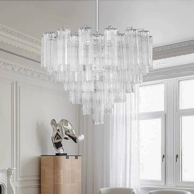 The Voila Chandelier, crafted from metal and hand-blown glass, embodies French elegance and is perfectly suited for traditional or French-style spaces. Available in standard colors of Clear and Cloud White, this versatile chandelier can be customized in any size or color to complement your interior design. Ideal for dining areas, living rooms, void spaces, or even as a wall lamp, the Voila Chandelier adds a touch of timeless sophistication to any setting. Elevate your décor with the exquisite beauty and adaptability of the Voila Chandelier.