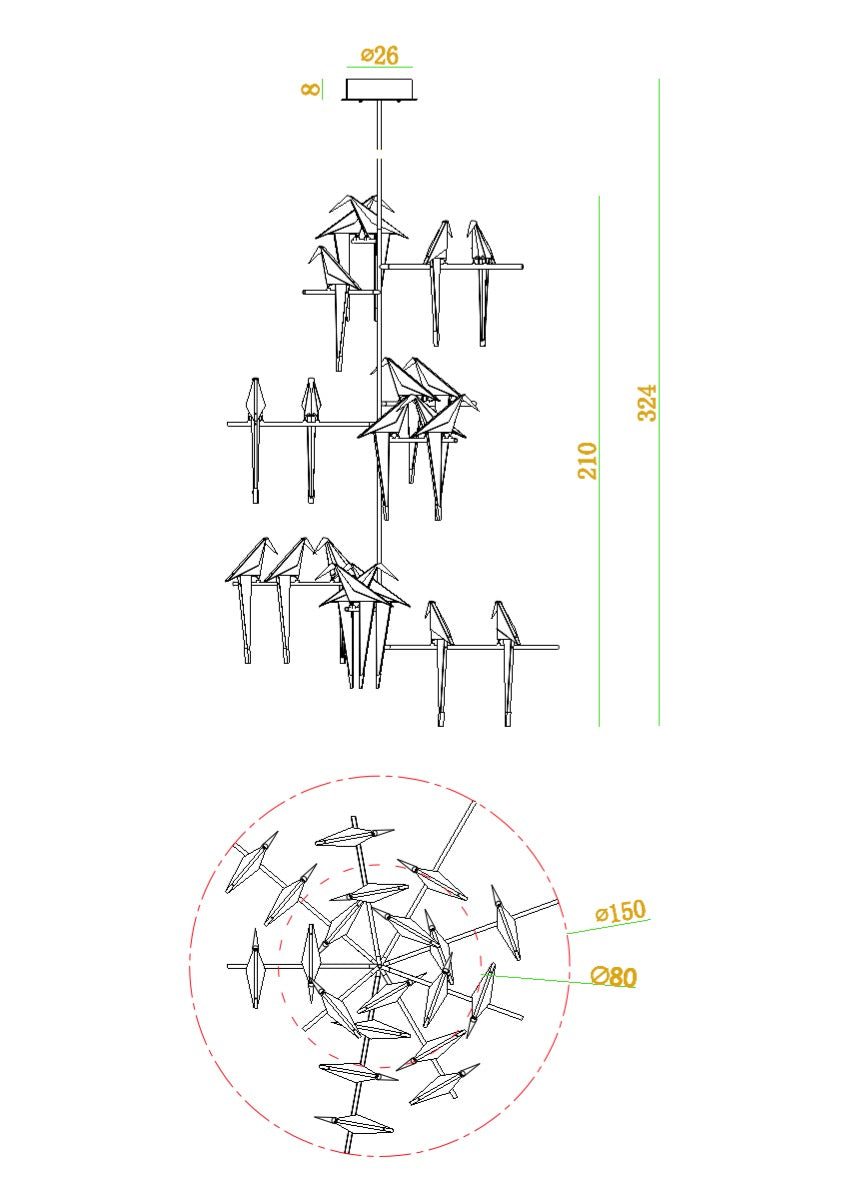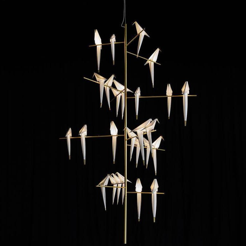 The Birdcage Pendant 20 is the ultimate statement piece for your home. 20 LED Birds gently swing on the branches, turning your space into a technological menagerie...without the noise or mess! Crafted from brass with folded paper lights which resemble birds on branch, who softly swing when touched. This quirky yet modern design can bring a little bit of youthful imagination to contemporary spaces.