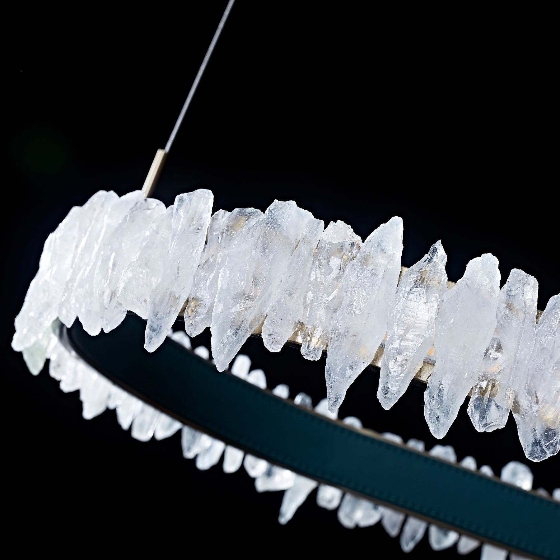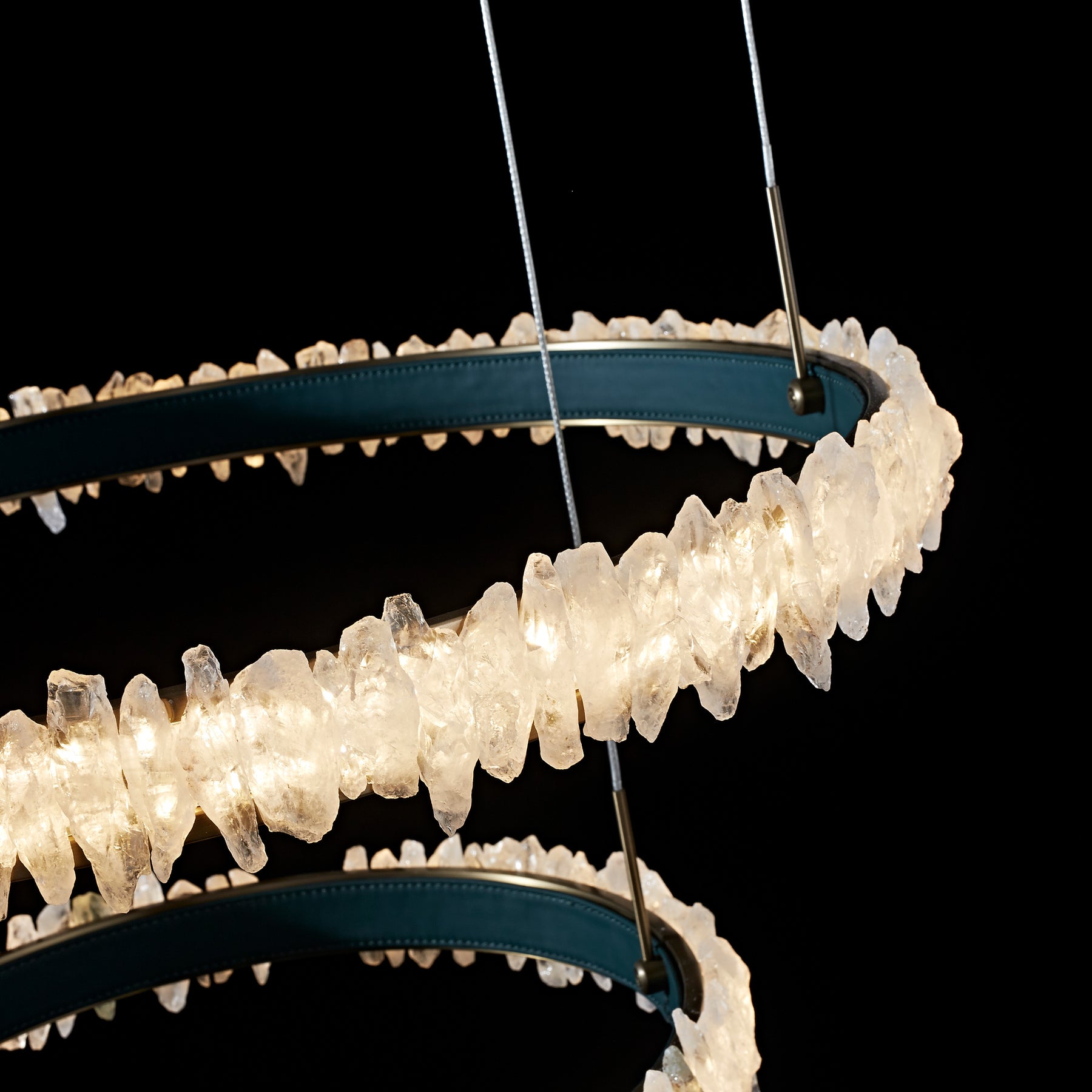 Introducing the Couro e Cristal Duo Ring Pendant – a stunning fusion of stainless steel, South American crystals, and leather. Available in three sizes: 600mm, 800mm, and 1000mm. This pendant offers versatile styling options - it can be displayed as a single or double ring, creating a unique visual impact. Ideal for living room or bedroom spaces, it seamlessly blends elegance and functionality. Elevate your interior design with the exquisite Couro e Cristal Duo Ring Pendant, a testament to artistry and innovation.