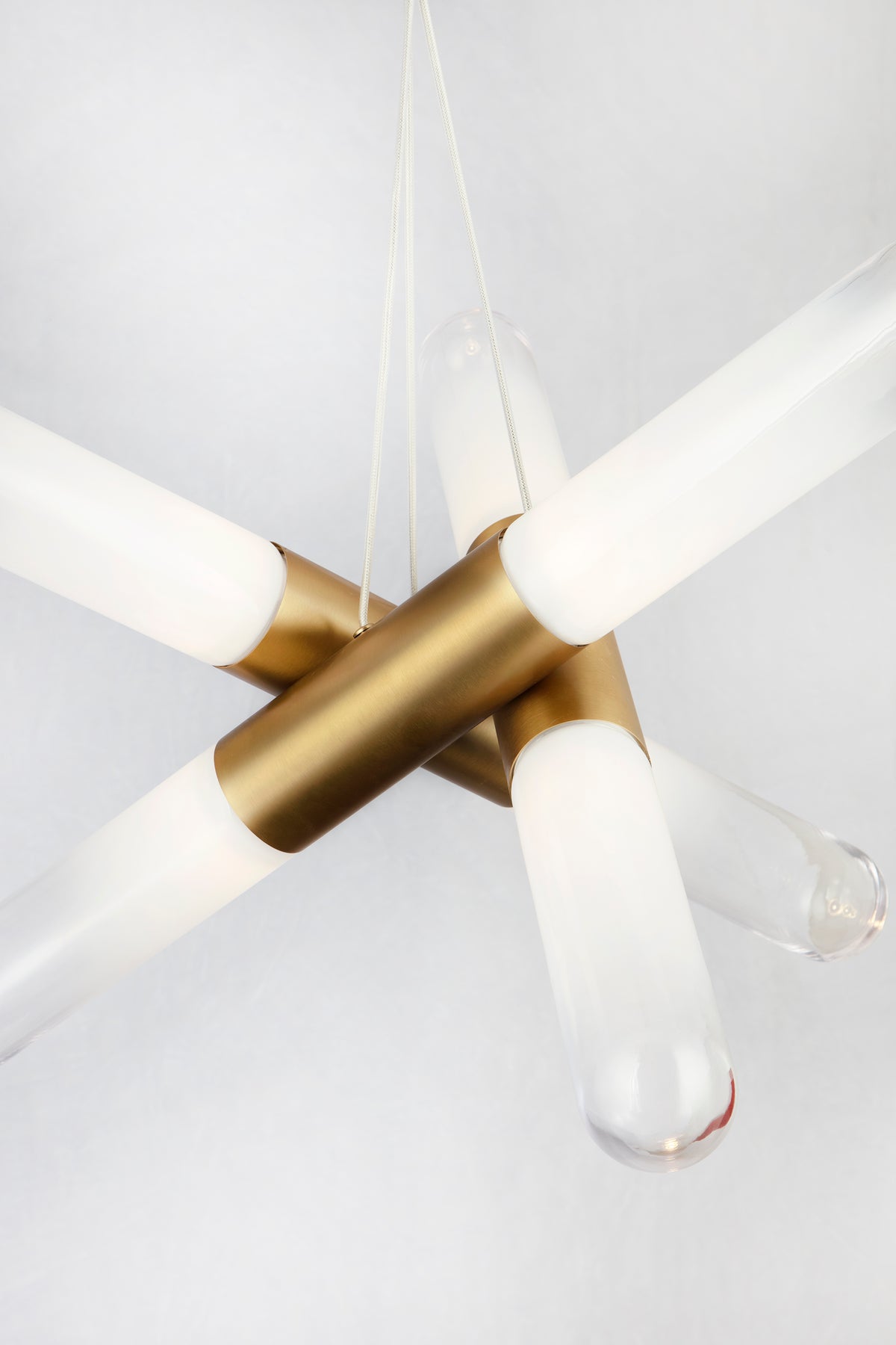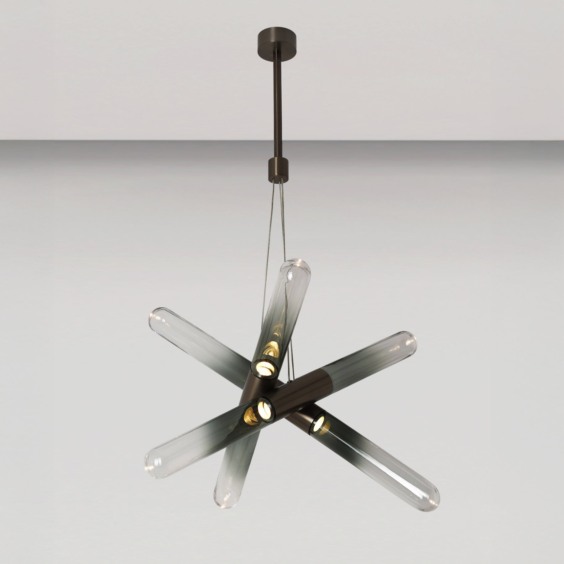 The Crystal Capsule 6 Pendant Light is a stunning centerpiece that combines modern aesthetics with timeless elegance. Its bold design features six elongated crystal capsules arranged in a striking star-like configuration, offering a dynamic and sophisticated lighting solution for contemporary interiors.