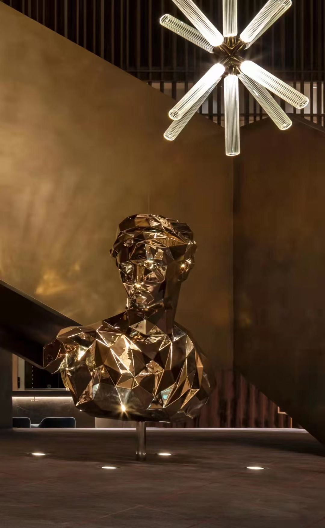 Etoile Burst A Chandelier - Engraved blown glass is paired with high-gloss polished metallics to create this striking luminaire, the Etoile Burst. As in starlight, this pendant provides a gentle glow, refracted through the engraved glass to dazzling effect. The engravings add a touch of glamour and tradition whilst the overall shape is modern, allowing this piece to suit both a classic or contemporary decor. Ideal for use over dining tables, in living spaces, staircases and more, speak with our lighting consultants on how to incorporate the Etoile Burst into your home or project.