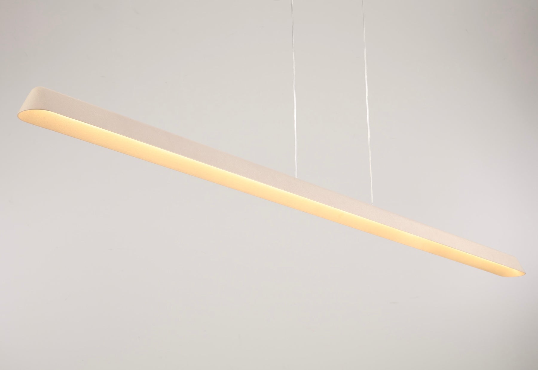 Introducing the Feldon Linear Pendant Light: A modern marvel crafted from aluminum, featuring built-in LED and a hand-wave dimming sensor. Available in khaki off-white and khaki grey, its sleek 1500mm design is ideal for illuminating kitchen benches with style and intelligence.