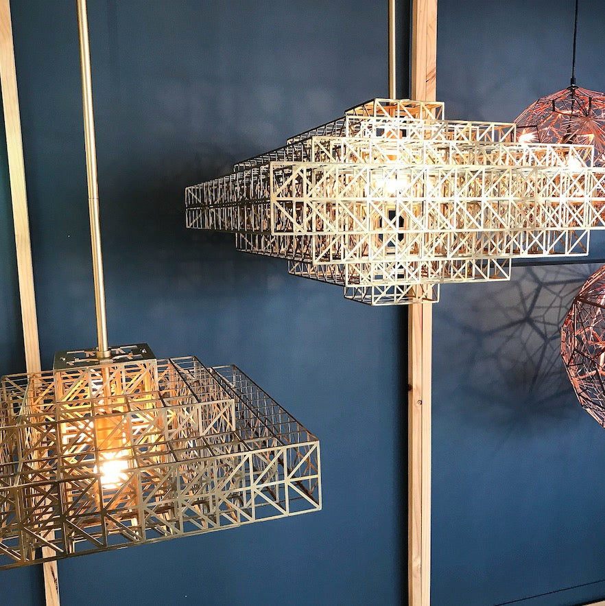 Raw and unpretentious, The Cage Pendant is a series of lamps in the style of the Brutalist movement. Cage feels industrial in its straightforward, platonic forms and the repetitive efficiency of the grid.