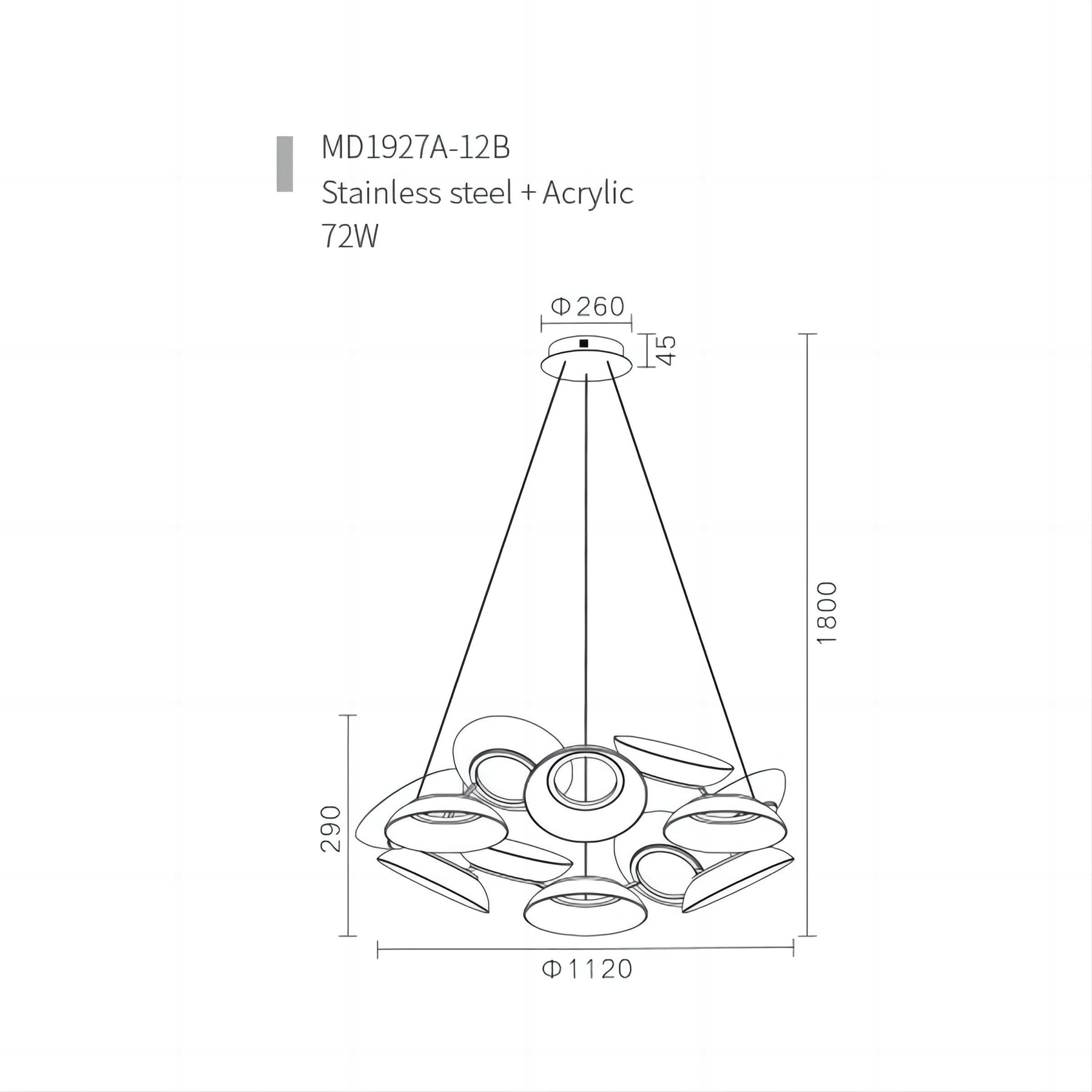 Dimension: W∅1120*H290mmCord:1500mm or custom length