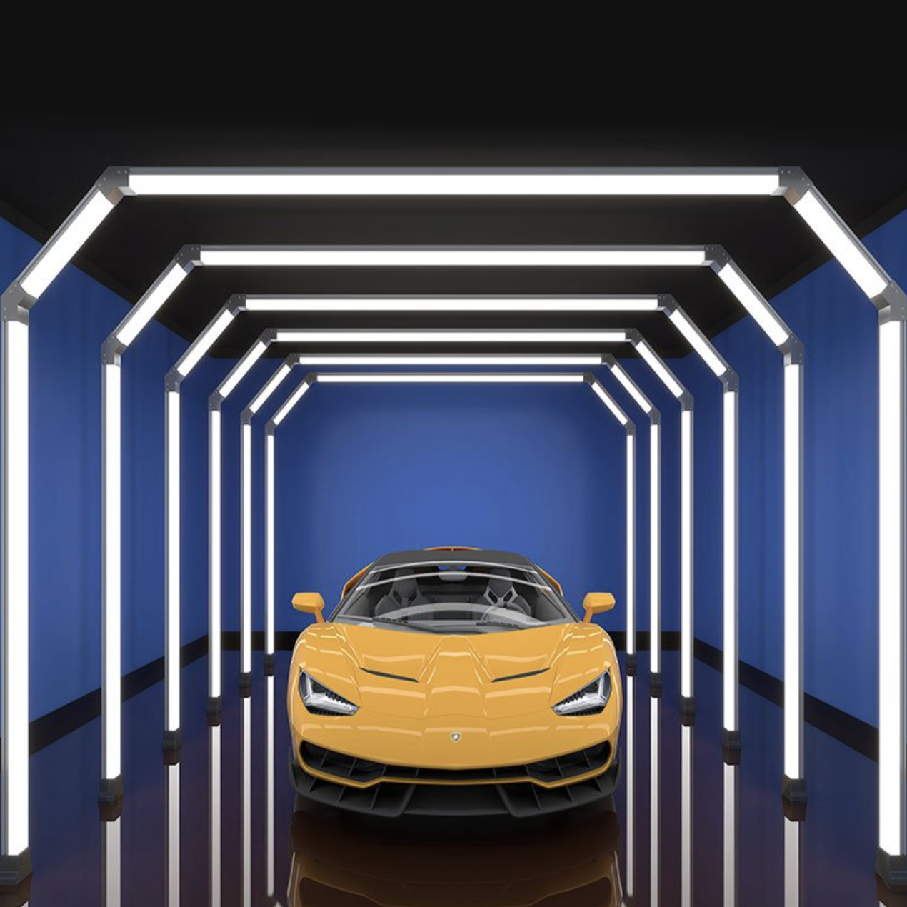 Designed with 6 light groups and 100mm wide LED profiles, it delivers consistent, ultra-bright illumination across the full length of the vehicle—especially effective for tasks requiring visual accuracy such as film application, polishing, or paint inspection.