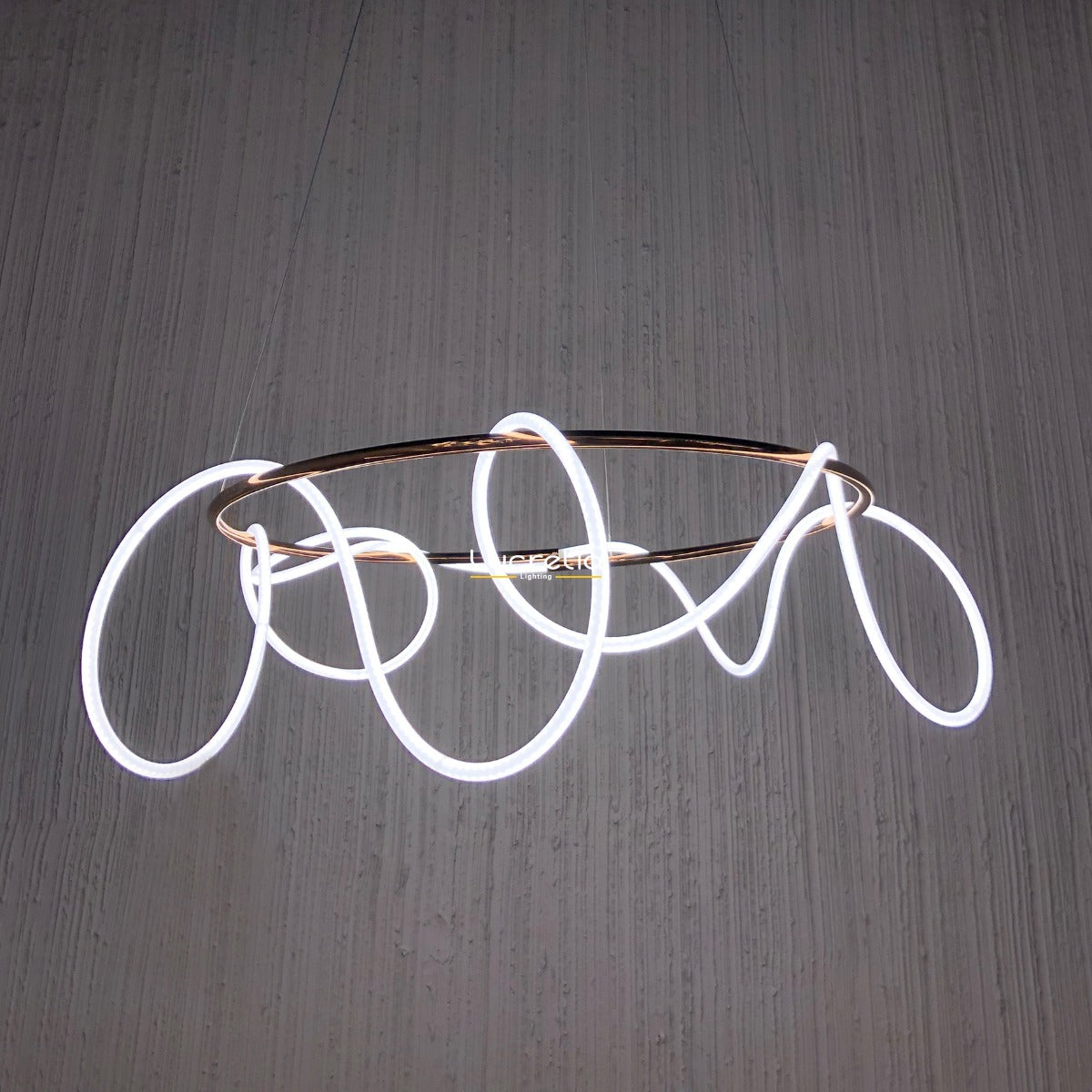 The interplay of rigid steel and flowing light combine in the Mariner. Family and guests’ eyes will follow endless natural forms, an interplay in control and chaos. Perfect as a light feature for a dining room, bedroom, or entrance. Handmade with exceptional craftsmanship, this is the ultimate in contemporary lighting art. The Mariner's look is yours and your alone: customise your LED tubing around the Mariner creating a look as individual as your tastes desire. Mariner made of 304 stainless steel and finished in vaccum plasma electroplating. Available in Rose gold finishes.