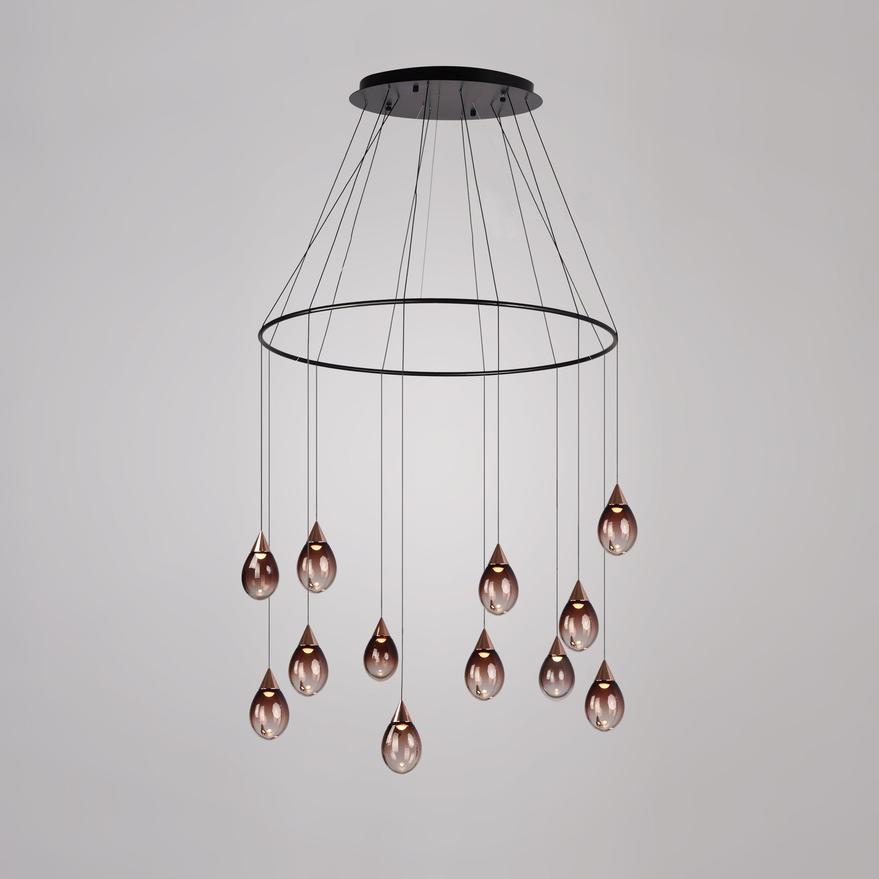 Norden Void 12 ring Pendant light - The Norden Pendant is a Scandinavian style hand-blown glass pendant light. Typifying serene and simple design as pioneered by the Nordic nations, the glass shade is sourced from Sweden and is finished in the shape of a raindrop with in-built LED lighting. Casting a gentle, diffused glow, the Pod pendant would be well placed over a dining table, in an entrance hall, a living room or a bedroom. Fully customisable with various configurations available, this pendant will add quiet dynamism to any space. Speak with our lighting consultants on how to incorporate the Pod into your home or project.