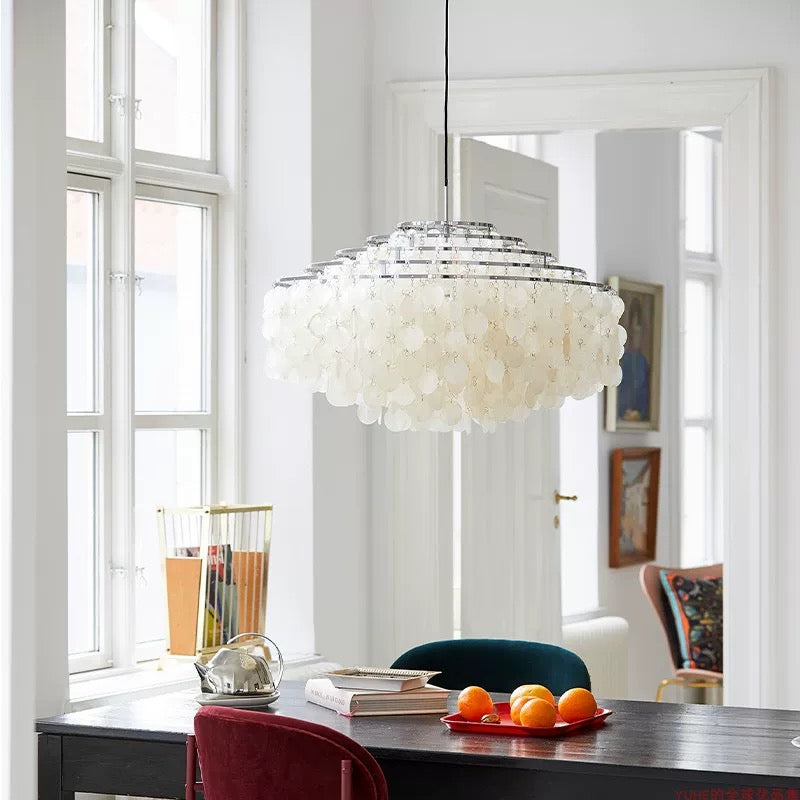 The PearlWave Pendant Lamp, measuring D700mm x H440mm, is a stunning lighting fixture that brings elegance and natural beauty to any space. Featuring a chrome frame adorned with delicate shell drops, this pendant lamp creates a mesmerizing play of light and texture. Perfect for both residential and commercial interiors, the PearlWave Pendant Lamp adds a touch of sophistication and coastal charm. Illuminate your space with the exquisite PearlWave Pendant Lamp and experience the harmonious blend of modern design and natural elements.