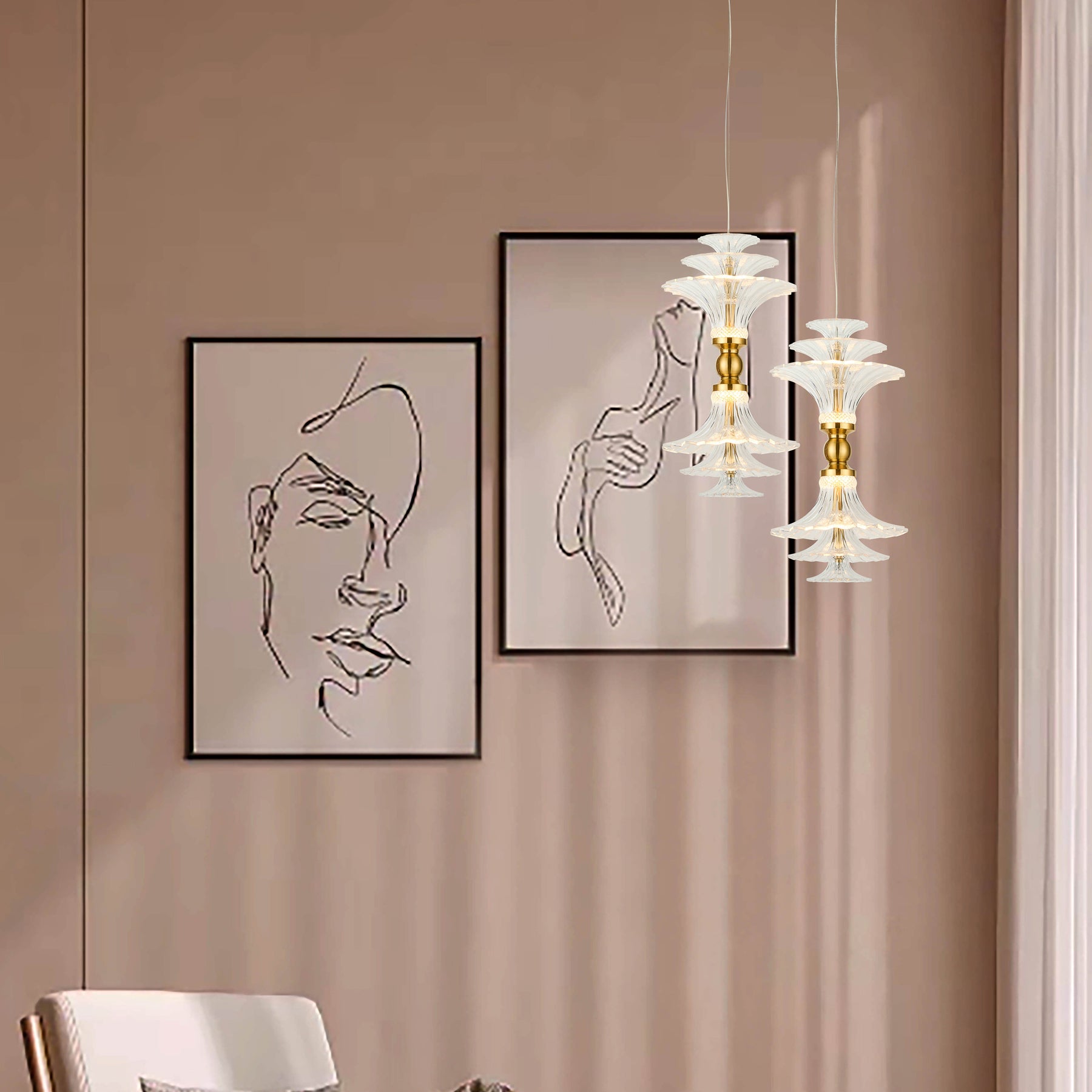 With its Art Deco symmetry and sculptural silhouette, the Petaluxe 380 Pendant Light features hand-blown glass petals and a brushed brass frame. Compact yet eye-catching, it's ideal for kitchen islands, vanities, and bedside spaces.