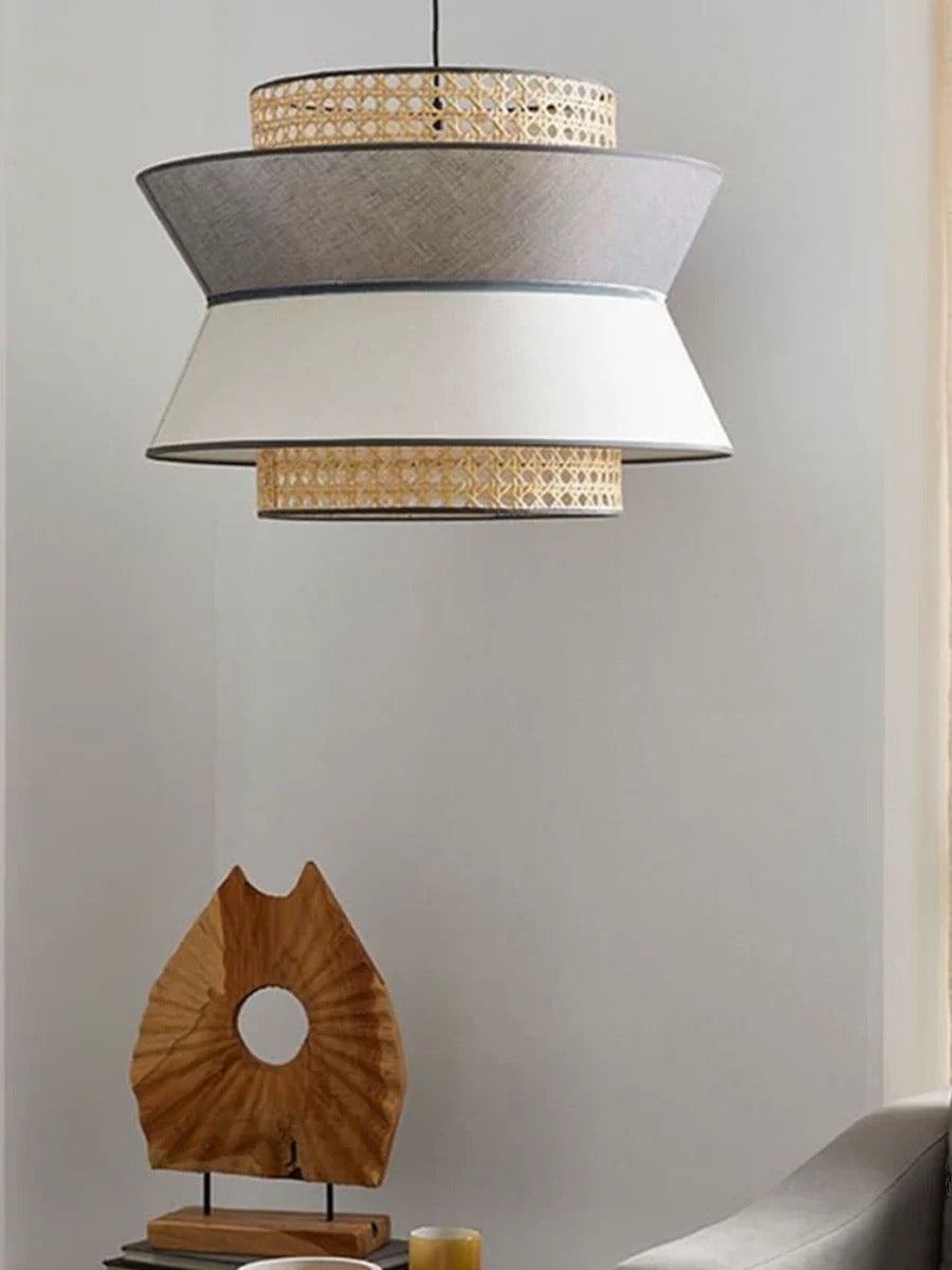 RattanGlow 580 Pendant Lamp: Stylish Rattan and Fabric Lighting
