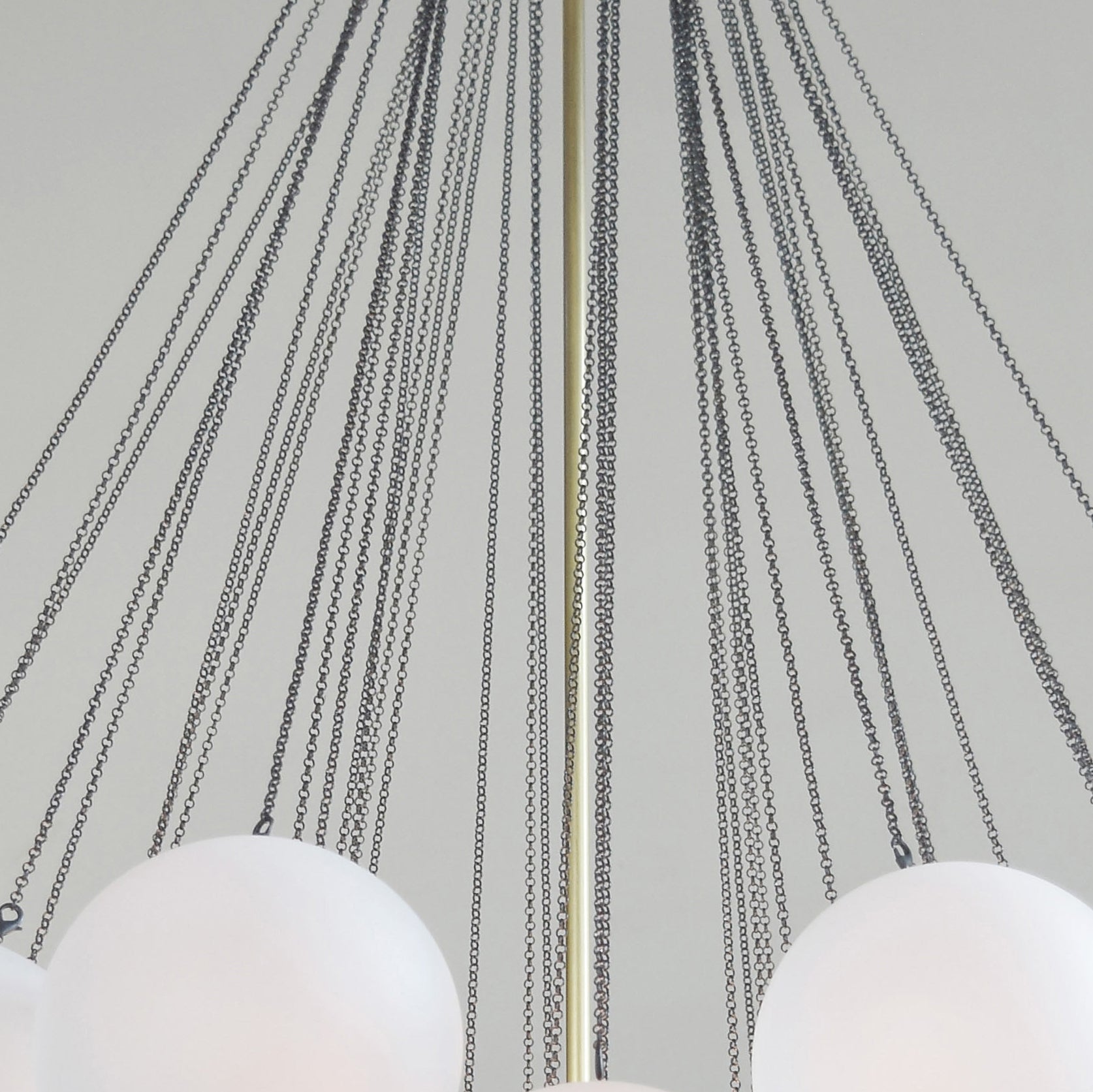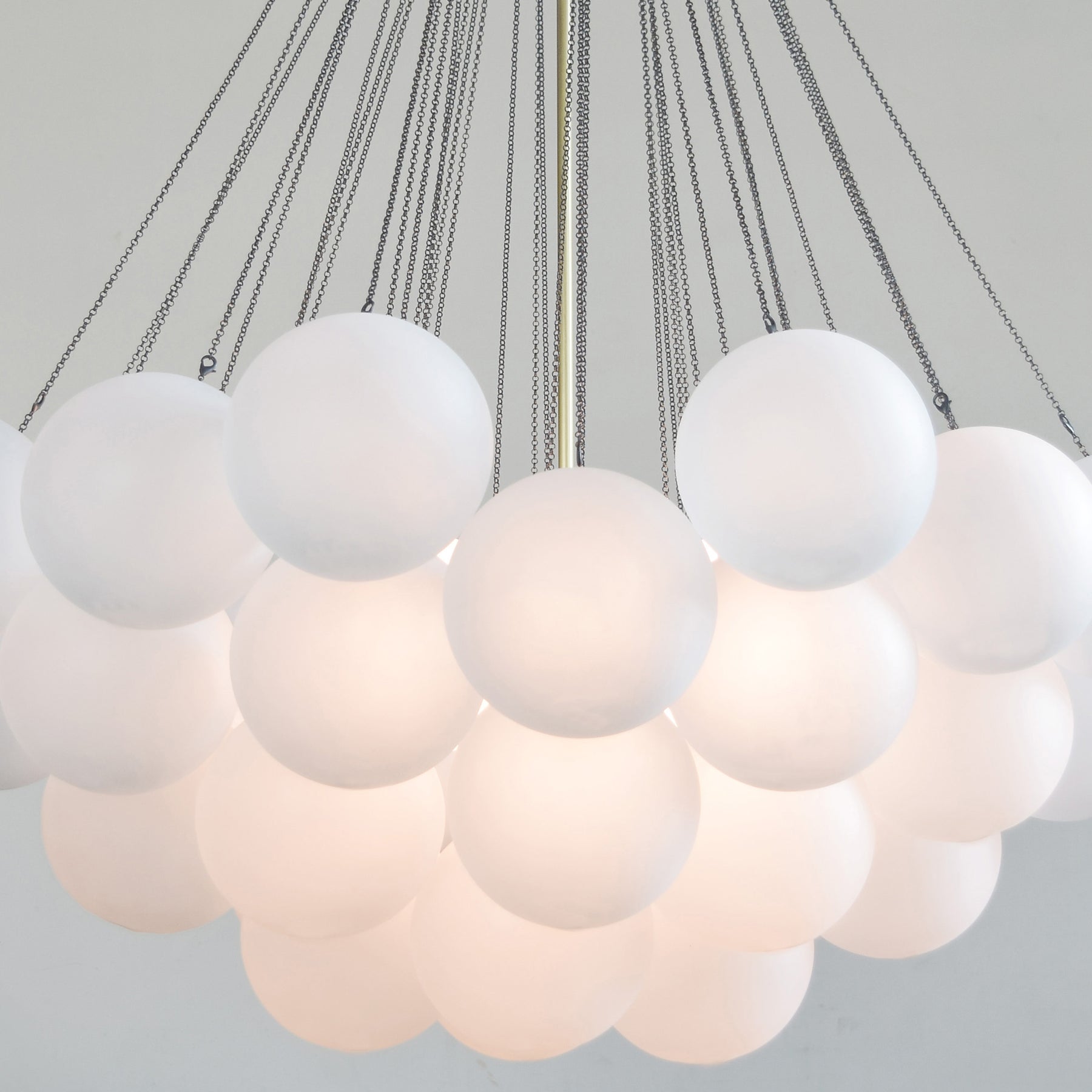 Introducing the Tribeca Custom Pendant Light, a fusion of classic and art deco styles. Crafted with fine brass and hand-blown glass, this versatile fixture suits living rooms, dining rooms, cafes, restaurants, and commercial spaces. The light source delicately diffuses through the chains and hand-blown glass, creating a captivating ambiance. Custom sizes available to suit any setting perfectly. Choose from Brass or Brushed Black to elevate your decor with timeless allure. Illuminate your space with the Tribeca Custom Pendant Light, a true embodiment of elegance and sophistication.