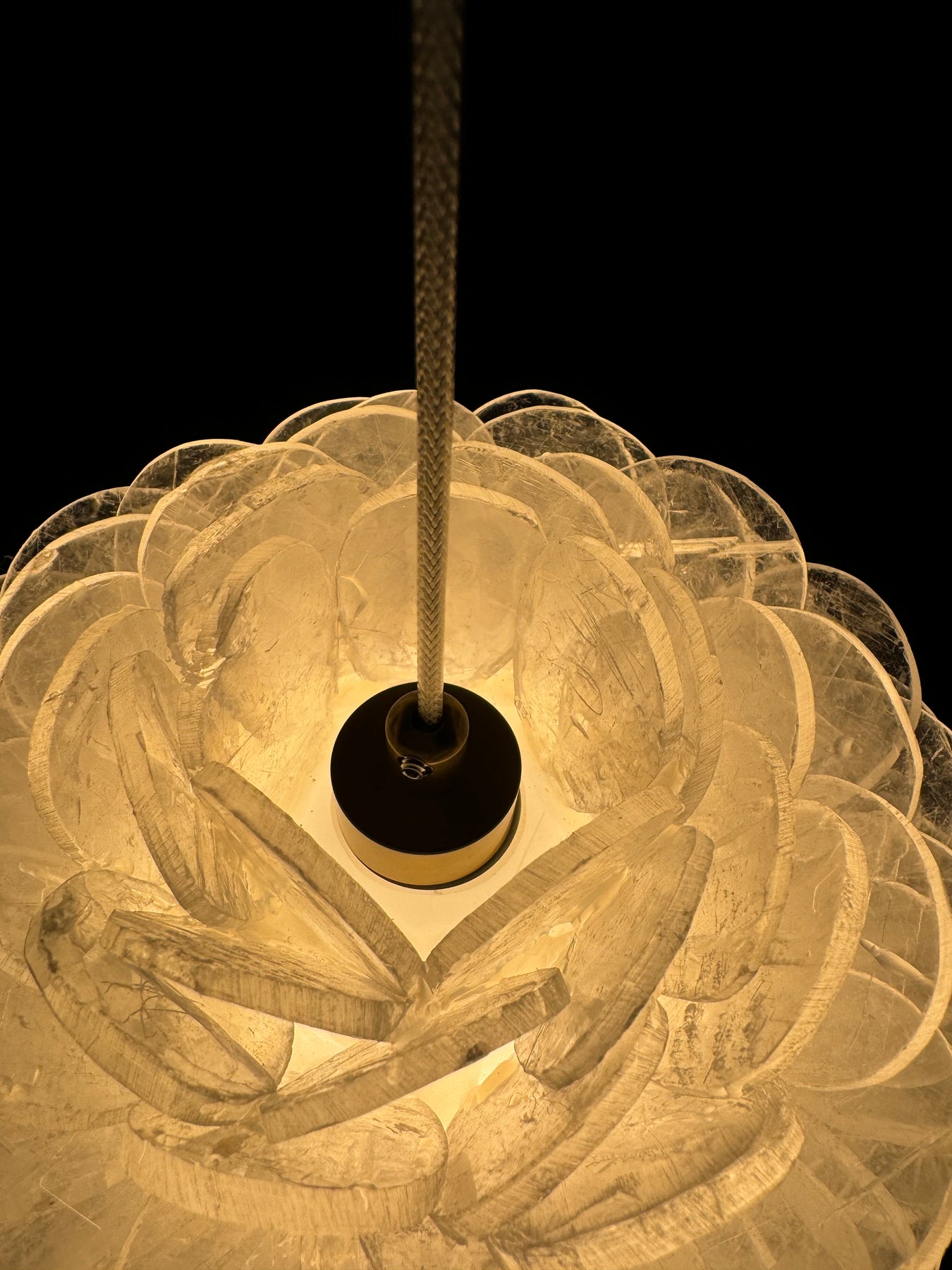 The Vivi Blossom Pendant is a masterpiece of craftsmanship, meticulously handcrafted from Brazilian crystal, with each petal-like piece carefully adhered by hand to create a stunning, fully bloomed floral form. This pendant captures the elegance and beauty of a flower in full blossom, with every angle offering a perfect view. Available in two sizes—160mm and 200mm in diameter—it features a built-in G9 LED light source for brilliant illumination.