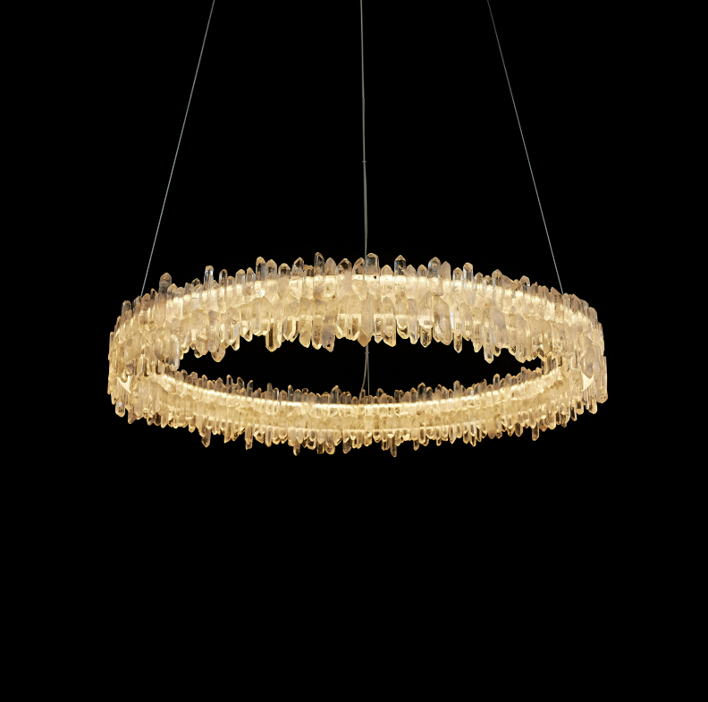 Introducing the Belo Glacia Ring Pendant – a symphony of artistry and innovation. Handcrafted with exquisite South American crystals, this pendant boasts a captivating double crystal design that exudes opulence. With built-in LEDs, it illuminates while adding a touch of modernity. Available in sizes 600mm, 800mm, and 1000mm, plus customizable options, it's a seamless fit for any space. Experience the allure of light and crystal, elevating your interior with the Belo Glacia Ring Pendant's timeless beauty and contemporary elegance.