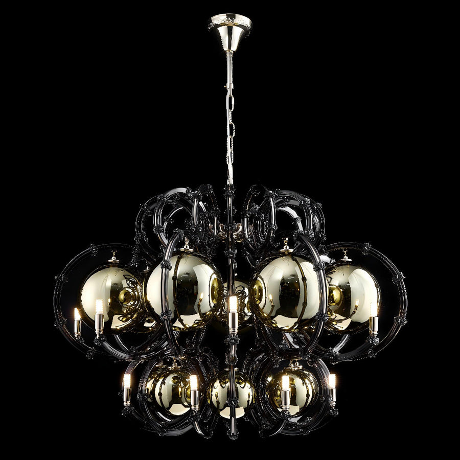 The Boom 670 Chandelier is a bold and sophisticated lighting fixture that combines modern design with impeccable craftsmanship. Featuring a meticulously crafted steel frame with an electroplated chrome finish, this chandelier exudes a sense of strength and elegance. The addition of black crystal accents and smoked grey glass shades enhances its dramatic appeal, creating a captivating interplay of light and shadow.