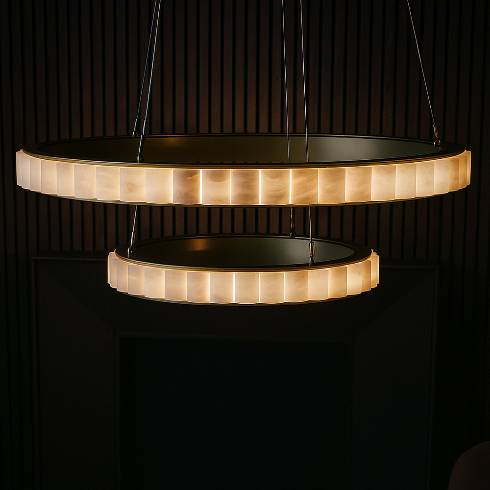 Elevate your interior with the Mystic Alabaster Pendant Light, where elegance meets versatility. Crafted from high-quality stainless steel and genuine Spanish alabaster, this pendant is available in three sizes: 600mm, 800mm, and 1000mm. Designed for flexibility, it can be arranged as a single ring or layered in double or triple configurations. Choose from standard finishes like brushed black or brushed gold, or customize the colour to match your decor. Perfect for adding a touch of sophistication to any space, the Mystic Alabaster Pendant Light is a statement piece that combines timeless style with contemporary appeal.