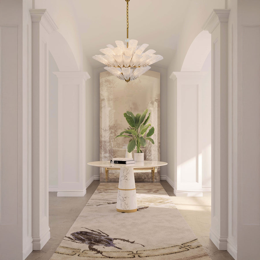 Elegant, sculptural, and versatile, the VetraLeaf Series reimagines classic chandelier design through exquisite handcrafted glass and refined metalwork. Each piece features hand-blown and hand-engraved glass petals arranged in graceful radial formations that bloom with soft, radiant light.