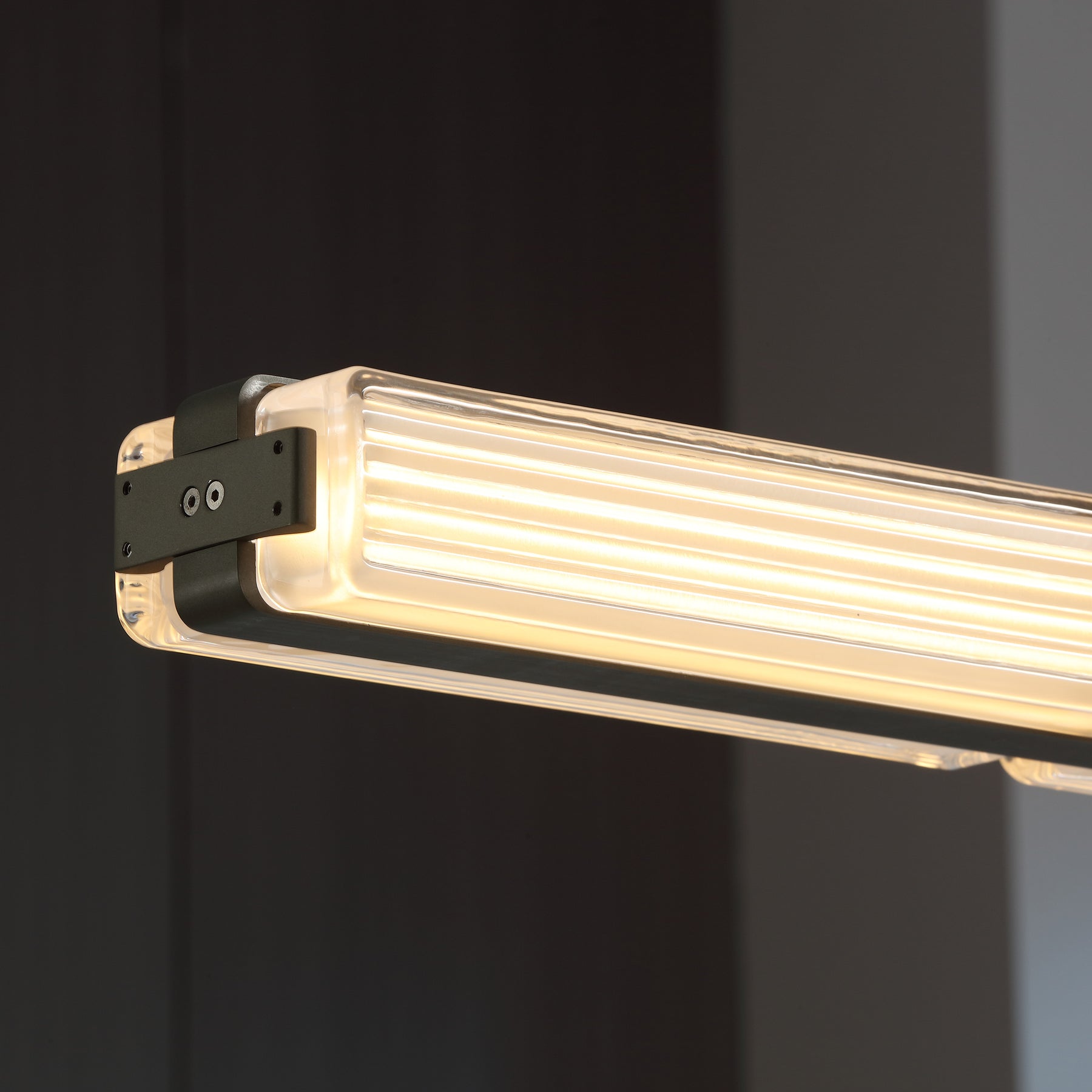 The Striato 10 Pendant Light by Lucretia Lighting translates the refined rhythm of the Striato Series into an elegant linear form designed for long kitchen islands, wide dining tables and contemporary interiors. Its precisely aligned glass segments create balanced illumination with a calm, architectural presence that suits both residential and design-led commercial spaces.