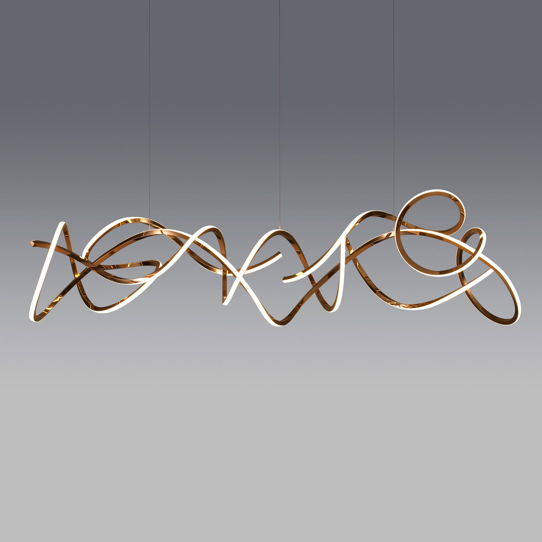 Ideal as a designer linear pendant light for dining spaces, voids and statement living areas, Artem transforms modern interiors into expressive architectural compositions defined by fluid geometry and luminous elegance.