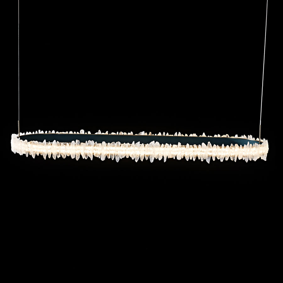 Meet our Couro e Cristal Oval Pendant: a mesmerizing combination of stainless steel, South American crystals, and sumptuous leather. With its striking oval design, measuring 1200mm x 300mm, this pendant light can be tailored to your desired size. Experience luxury and artistry in one elegant piece.