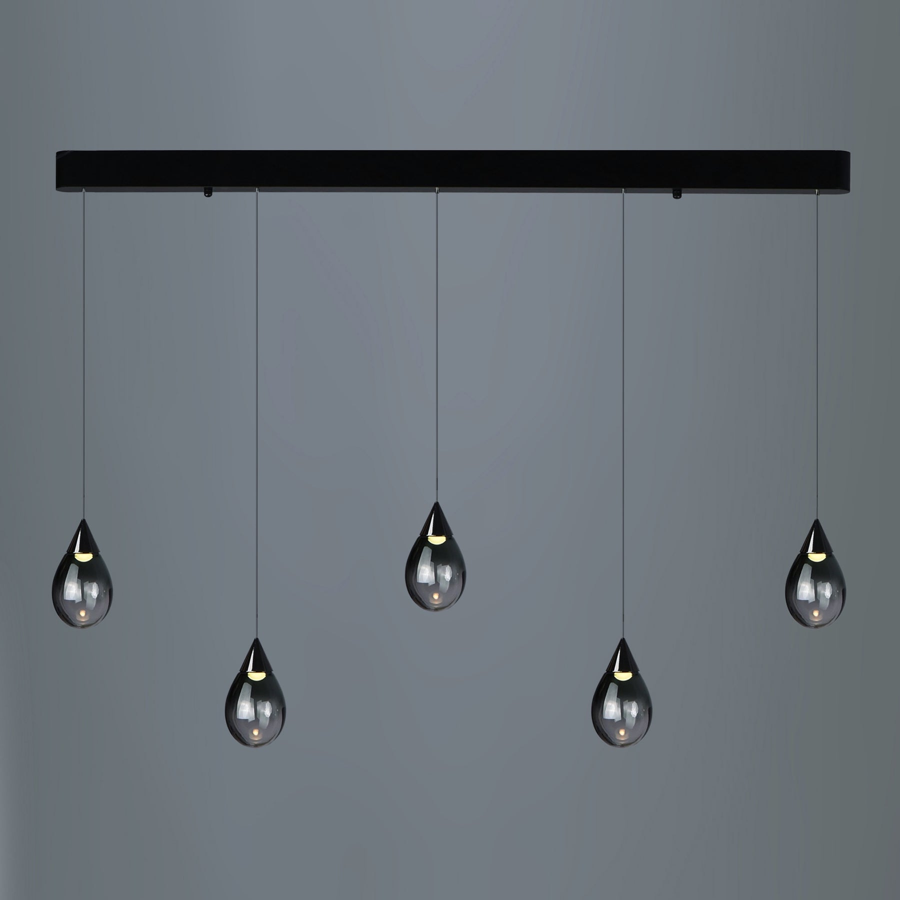 The Norden Linear 5 Pendant Light exemplifies the serene essence of Scandinavian design, combining refined craftsmanship with timeless minimalism. Each pendant is hand-blown from premium Swedish glass, forming elegant raindrop silhouettes suspended from a linear frame. The built-in LED illumination diffuses a soft, ambient glow that adds warmth and sophistication to any interior.