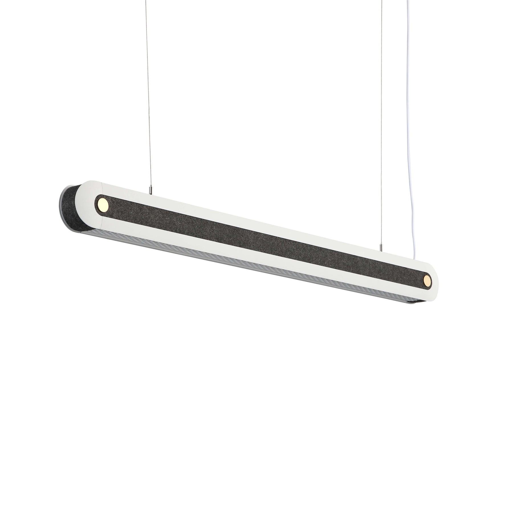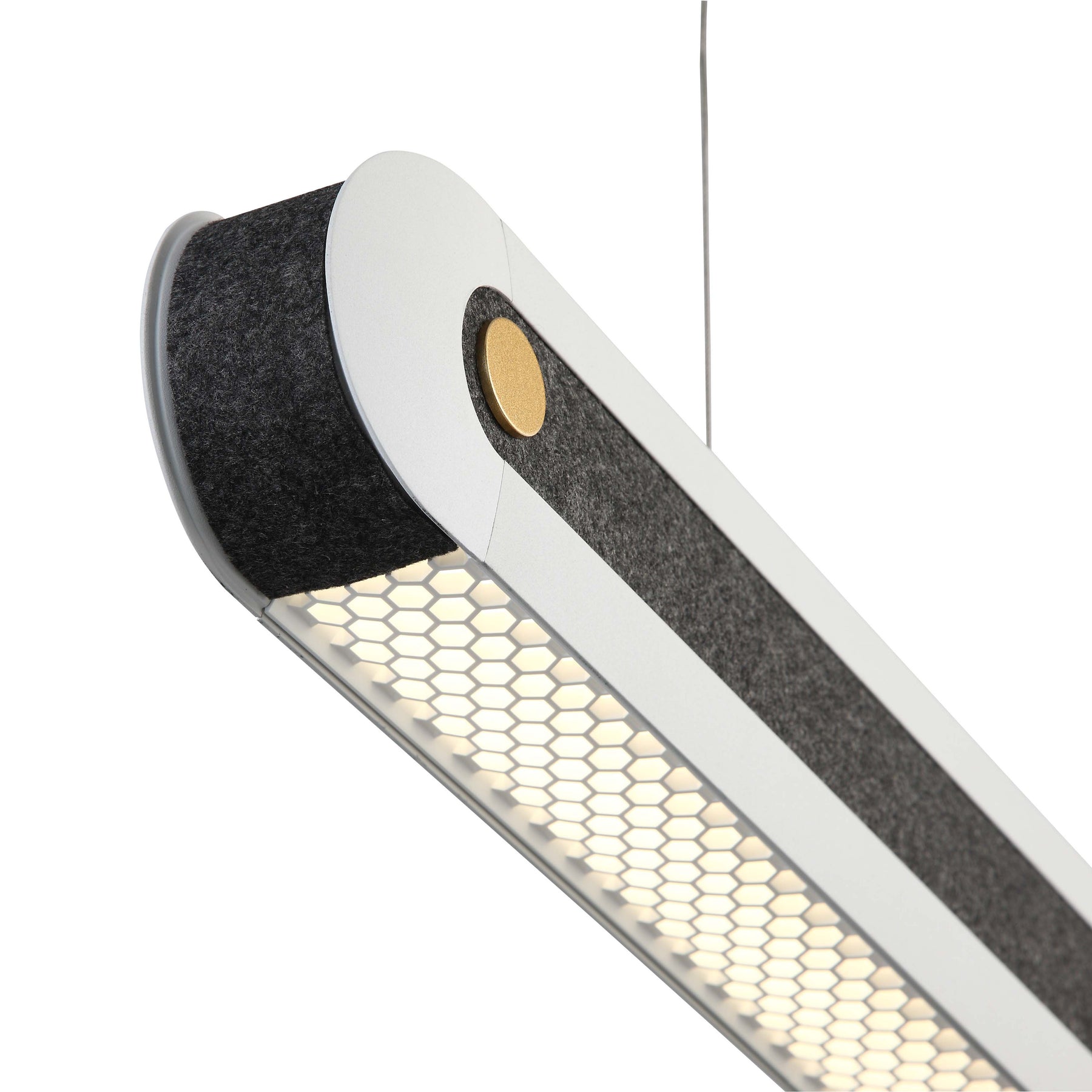 The HarmonyShade DuoGlow Pendant Light pairs sound-absorbing acoustic felt with a dual-direction anti-glare optical system, offering both upward ambient glow and downward task lighting. It enhances visual comfort, reduces glare, and improves acoustic performance in professional environments such as offices, meeting rooms, and educational spaces.