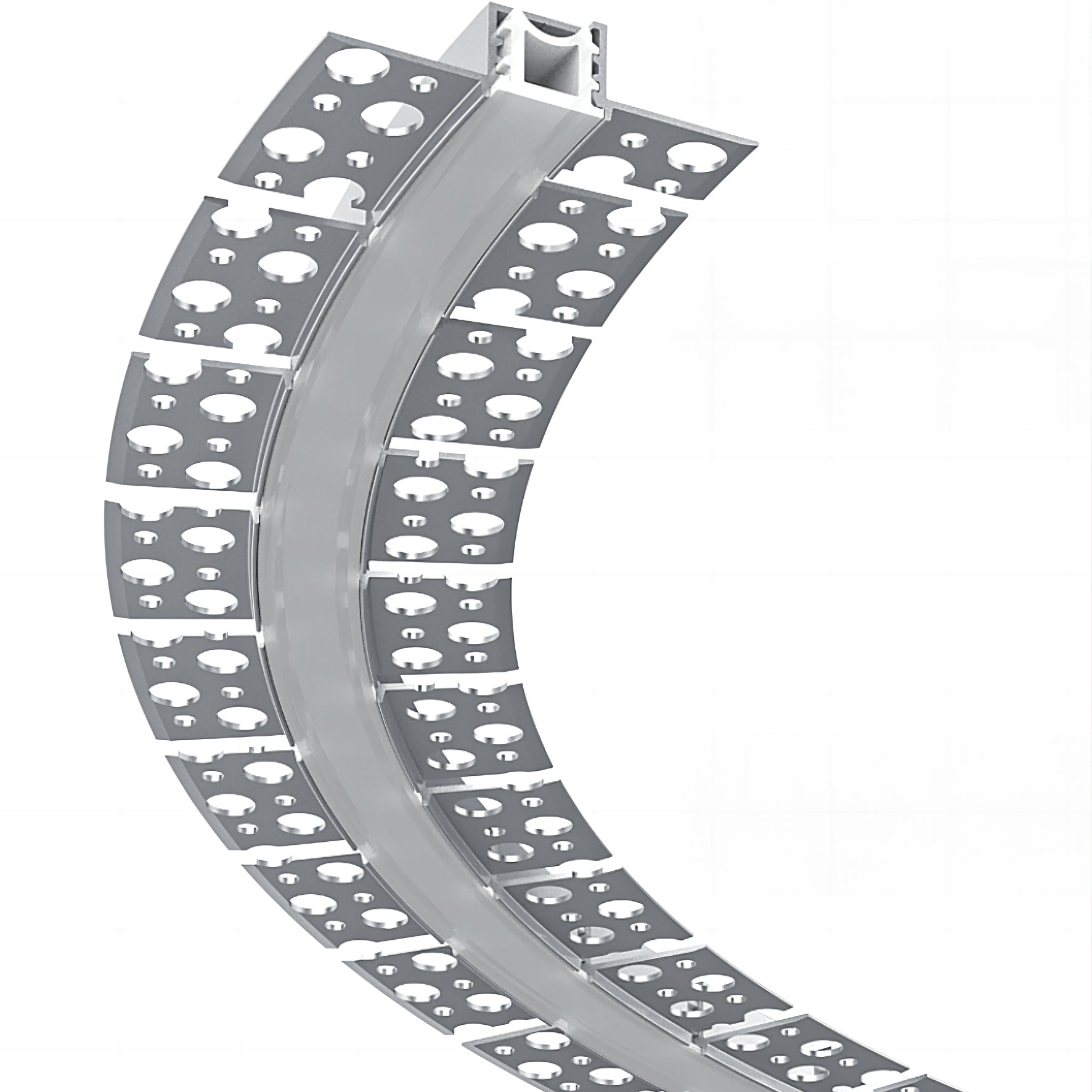 The Lucretia Curved Trimless Strip Light is available in three widths: 15mm, 25mm, and 38mm, with a standard length of 2000mm. This versatile profile can be shaped to fit any design on ceilings or walls, offering a unique customization option for your space. Please note that strip lights and drivers are not included. Contact our lighting consultants for the correct specifications and lighting solutions tailored to your needs.