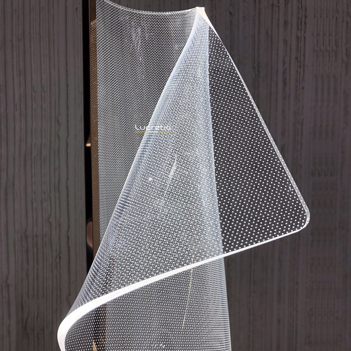The Silken Custom Light Guide Plate collection blurs the lines between luminaire and work of art. Constructed by heating optical acrylic then moulding it to create a unique sculpture each time, the Silken Custom Light Guide Plate Chandelier collection is one that is sure to add a focal point to any space. The LED’s reflect and bounce off the curves, creating depth and texture to the Silken Custom Light Guide Plate Table lamp truly beautiful luminaire.