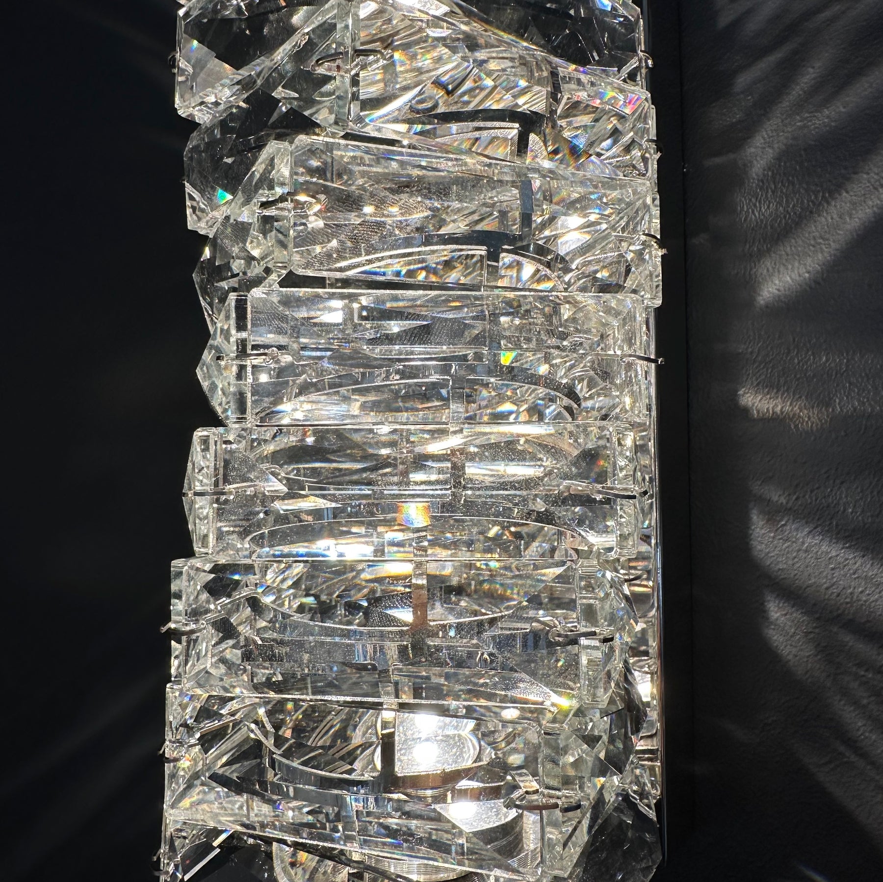 Note: Crafted from polished stainless steel and precision-cut crystals, this elegant wall light provides a refined decorative accent ideal for modern interiors.