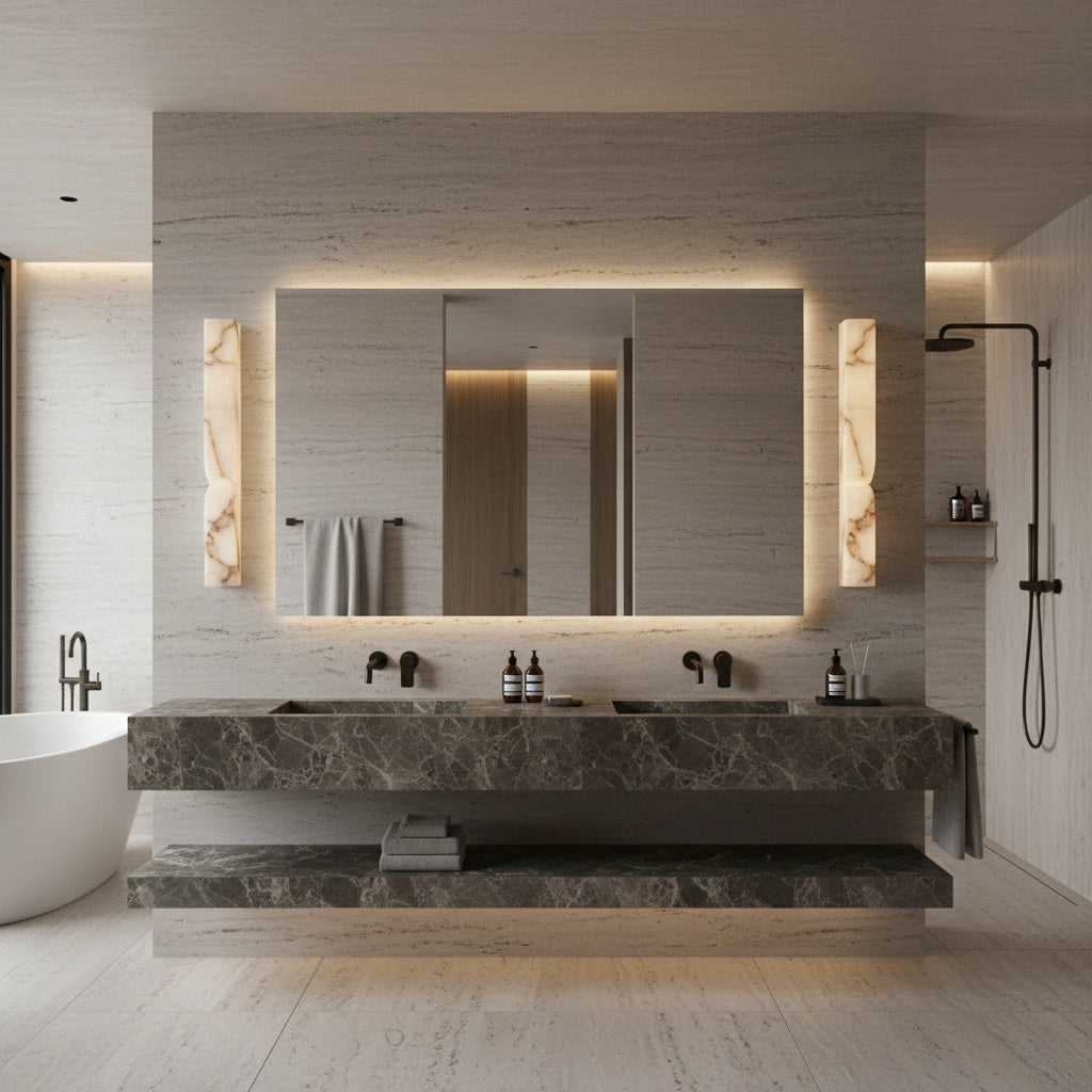The Cordoba Lumière 600 Alabaster Wall Lamp showcases the natural elegance of handcrafted Spanish alabaster in an elongated, sculptural silhouette. Its 600mm height enhances vertical space while providing a soft, diffused ambient glow that enriches modern and classic interiors alike.