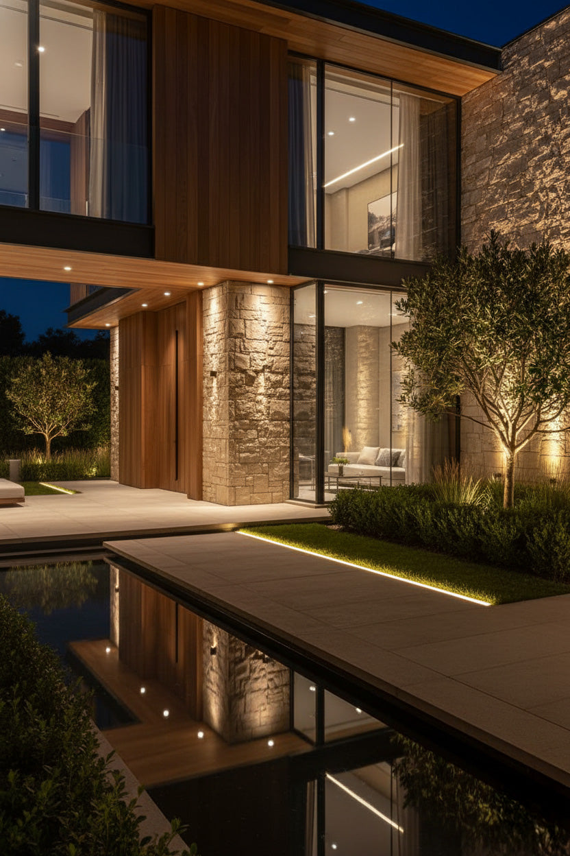 Landscape and exterior lighting – gardens, courtyards, façades, and pool areas
