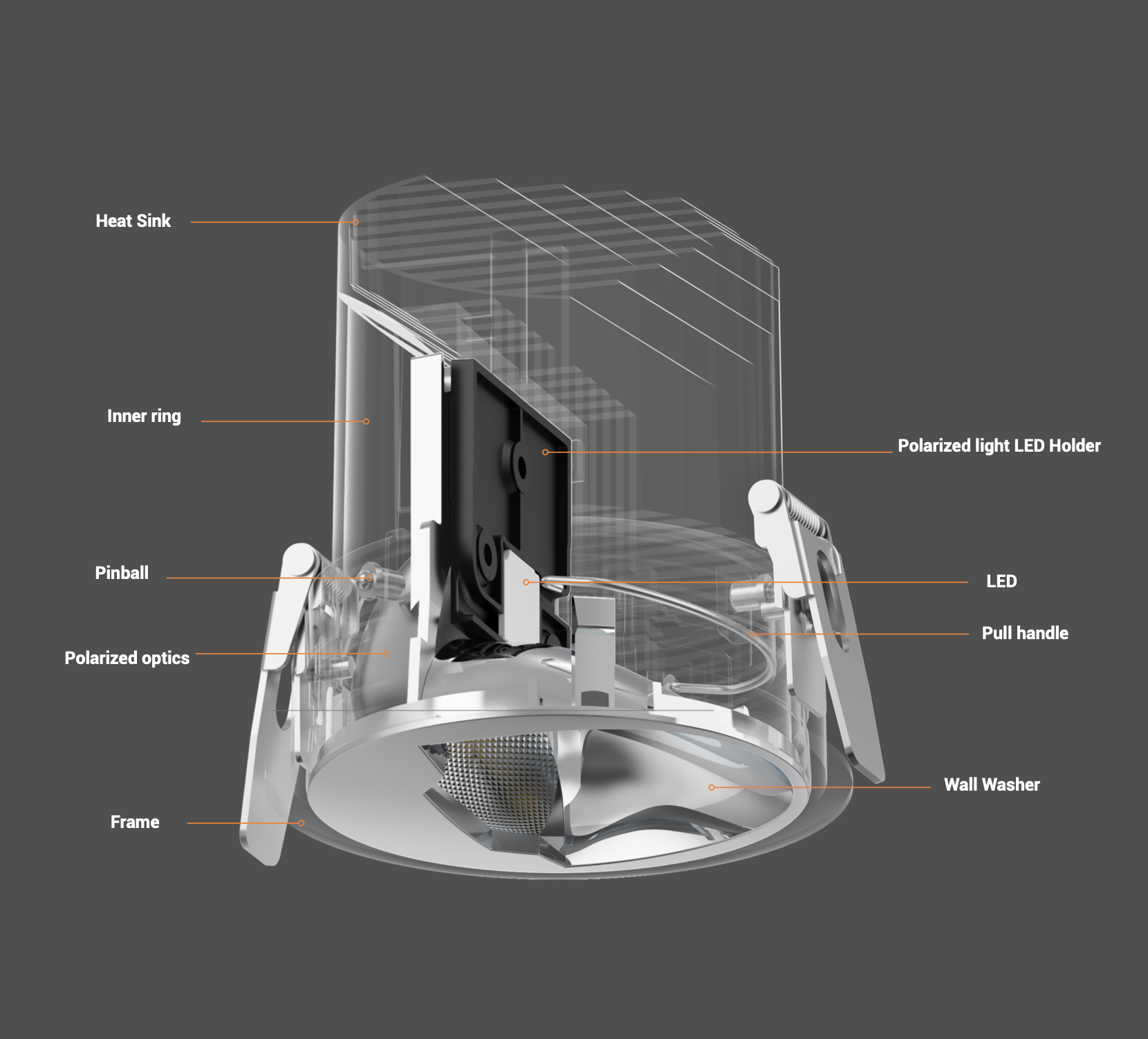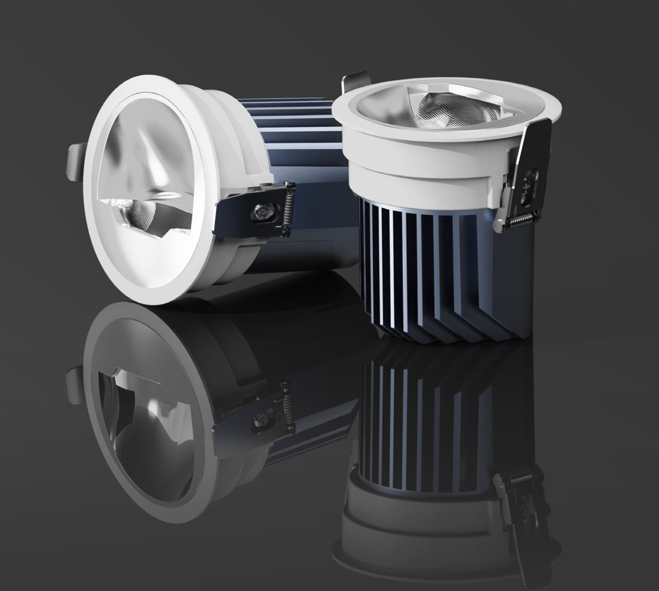 Body: Die-cast aluminium housing with powder-coated finish, polycarbonate optic, steel spring mounting clips