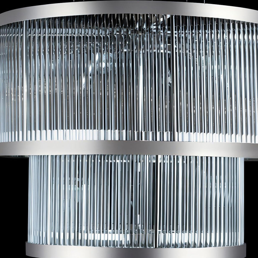 - Features a polished stainless steel finish, paired with elegant crystal rods that create a dynamic interplay of light.