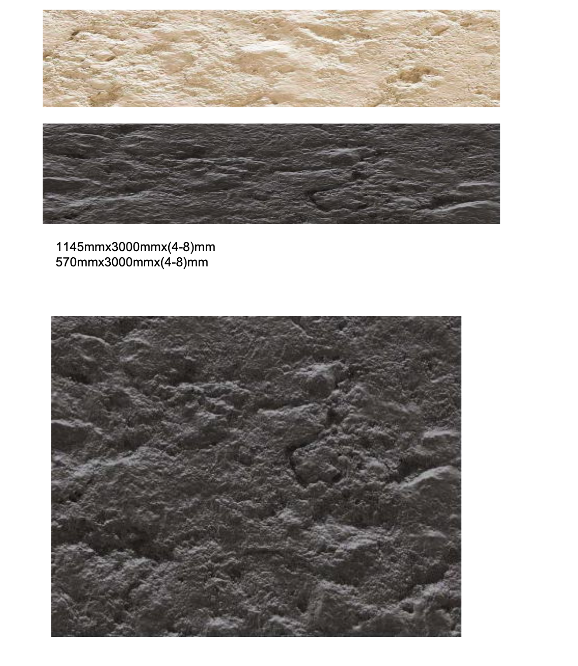 Dimensions:Large Panel Size: 1145mm x 3000mm Small Panel Size: 570mm x 3000mm Thickness: 4mm to 8mm